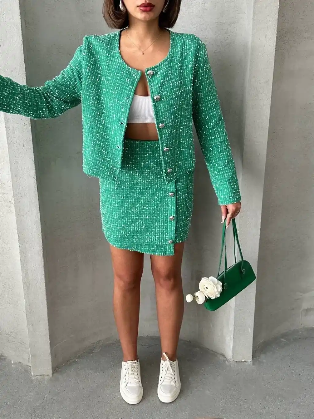 Bu sezonun trend parçalarından olan Ceketli Etek Takım CHL Kumaş Yeşil H24443, şıklığı ve rahatlığı bir arada sunuyor. KADIN GİYİM > TAKIM kategorisinde yer alan bu ürün, hem günlük kullanıma hem de özel günlerde tercih edebileceğiniz şık bir seçenek.