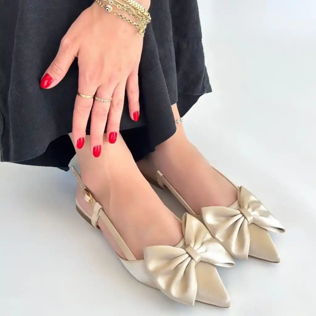 Cenya Bej Saten Babet Ayakkabı