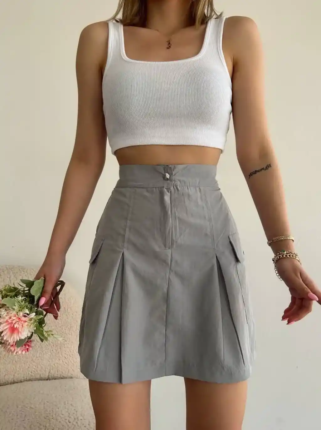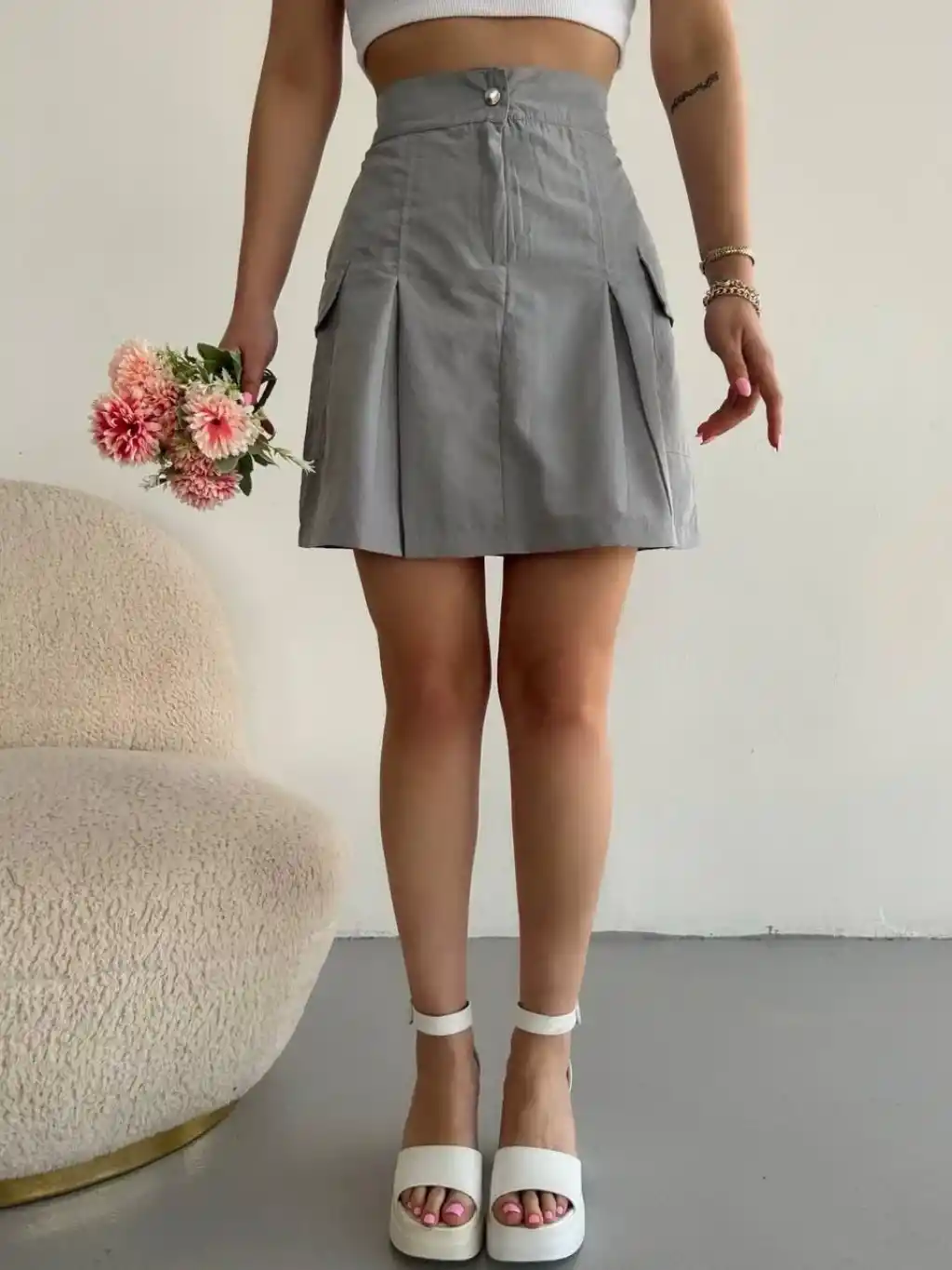 Cep detaylı oval kapaklı deri etek yeşil h240048