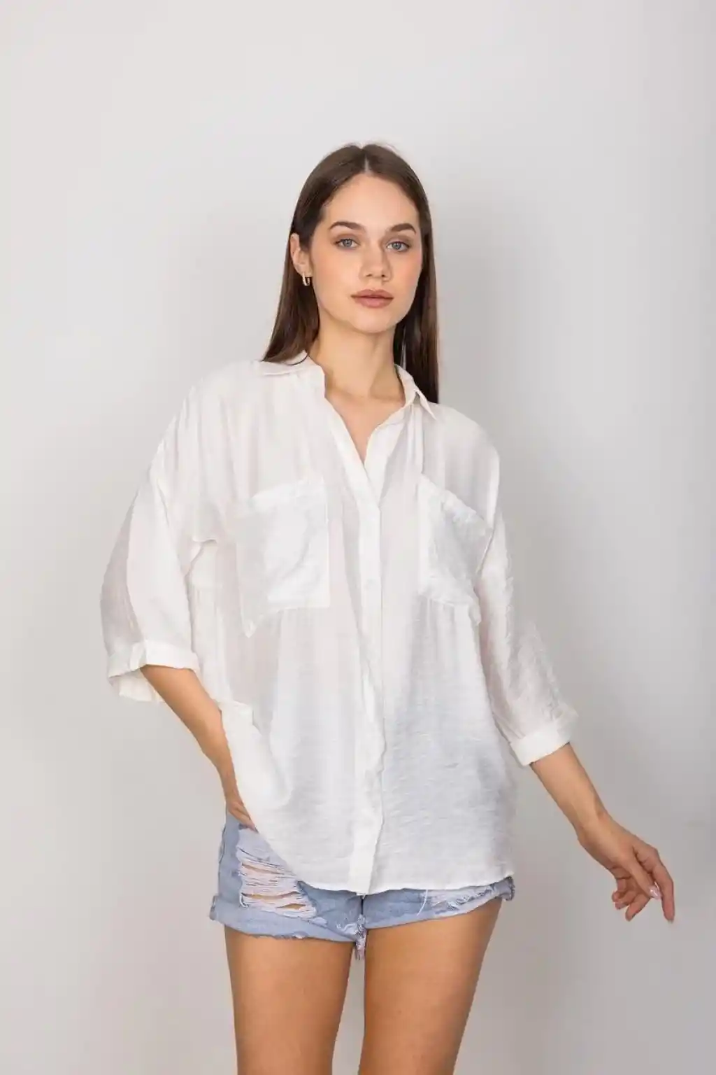 Şıklığı seven kadınların gardırobunda mutlaka bulunması gereken bir parçadır. T1010 Cepli Salaş Gömlek ile hem günlük hayatta hem de özel günlerde şık ve rahat bir görünüme sahip olabilirsiniz.