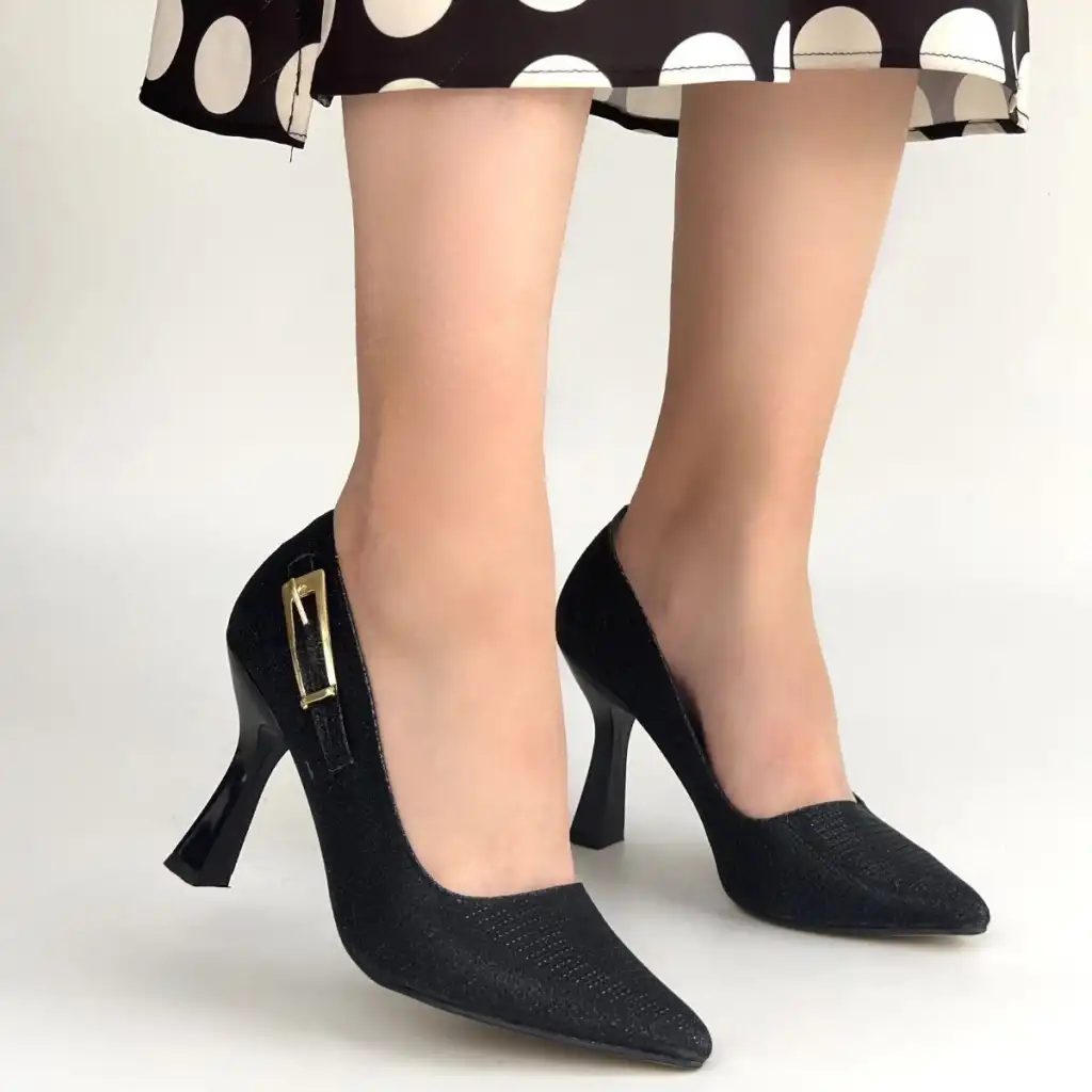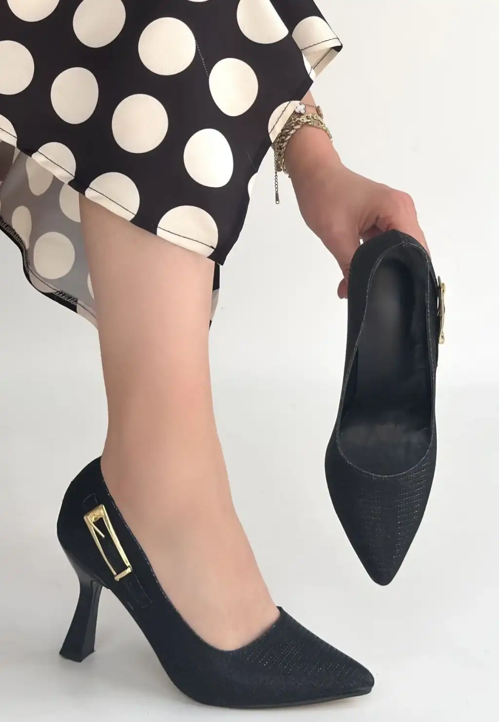 CERİN SİYAH SATEN SİMLİ TOPUKLU AYAKKABI