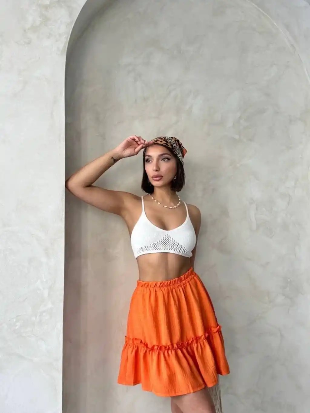 Bu şık ve rahat eteği günlük hayatta, arkadaş buluşmalarında ya da tatil günlerinde tercih edebilir, şıklığınızı konuşturabilirsiniz. Çingene keten etek turuncu s24808, gardırobunuzun vazgeçilmez parçalarından biri olmaya aday!