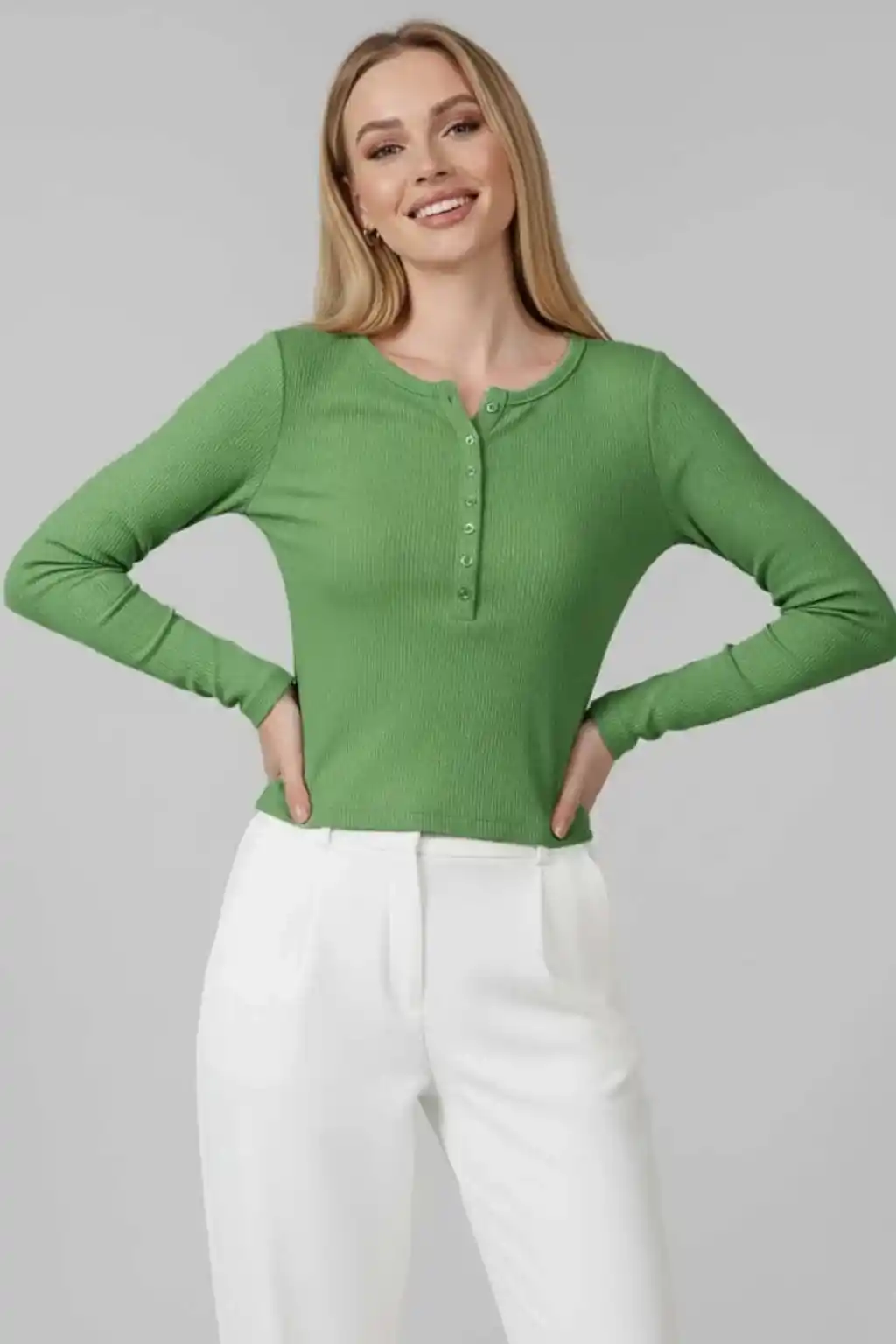 - Yeşil renk seçeneği ile dikkat çeken bluz, her bedene uyum sağlayacak şekilde tasarlanmıştır.