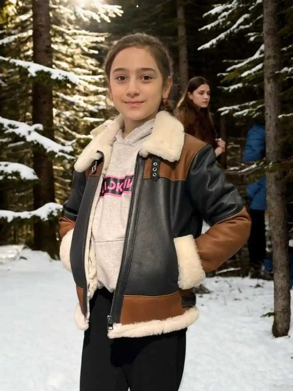 Çocuk Yakalı Parçalı Kürk - Kahve
