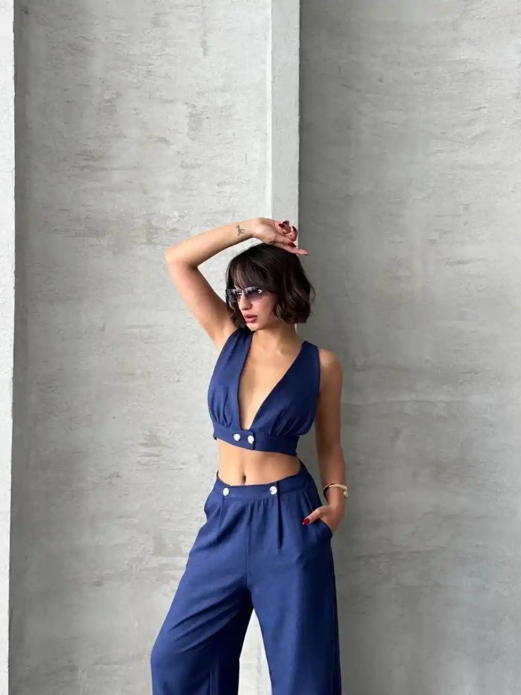 Ürün Adı: Crop Pantolon Keten Takım S255012