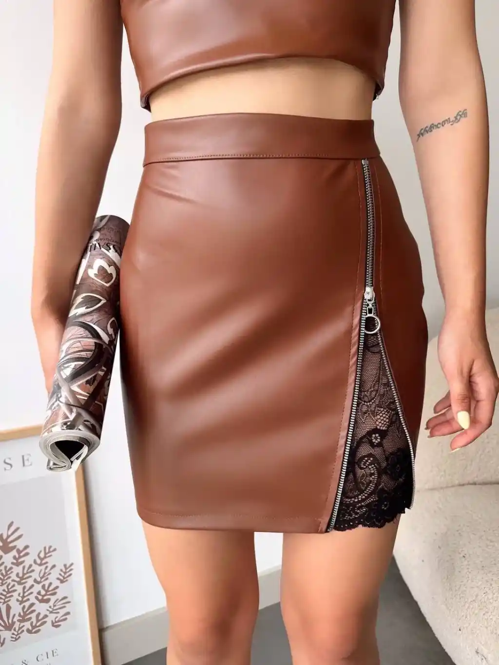 Şıklık ve tarzı bir arada sunan Dantelli Fermuarlı Deri Etek, gardırobunuzun vazgeçilmez parçalarından biri olmaya aday!