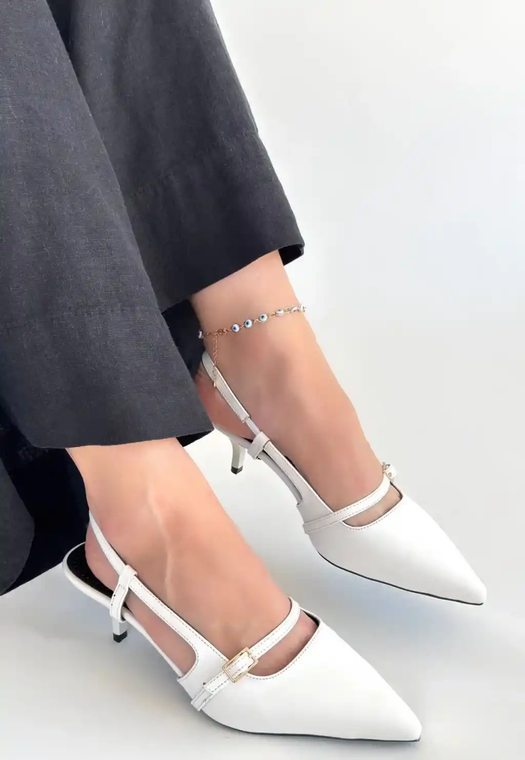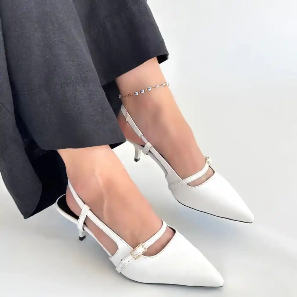 Darina Beyaz Cilt Topuklu Ayakkabı
