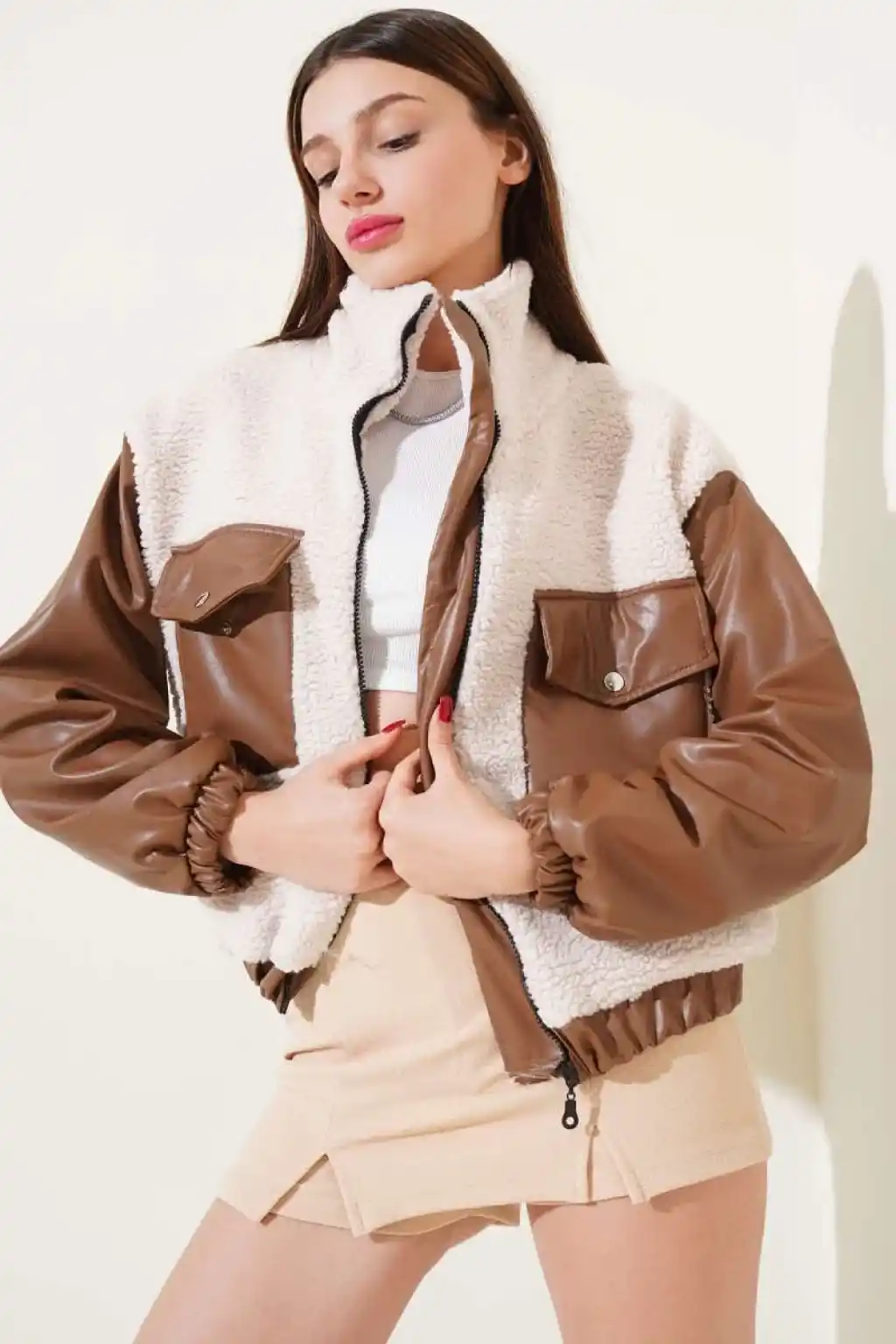 Deri garnili cepli peluş mont taba t1253, şıklığı ve rahatlığı bir arada arayan kadınlar için vazgeçilmez bir parçadır. Siz de bu trend parçayla stilinizi tamamlayabilirsiniz.