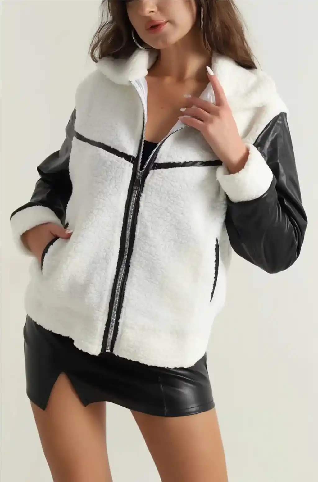 Bu şık ve modern tasarıma sahip Deri garnili kuzu peluş mont, gardırobunuzun vazgeçilmezi olmaya aday! Hem şık hem de sıcak tutan bu mont ile tarzınızı her mevsim konuşturabilirsiniz.