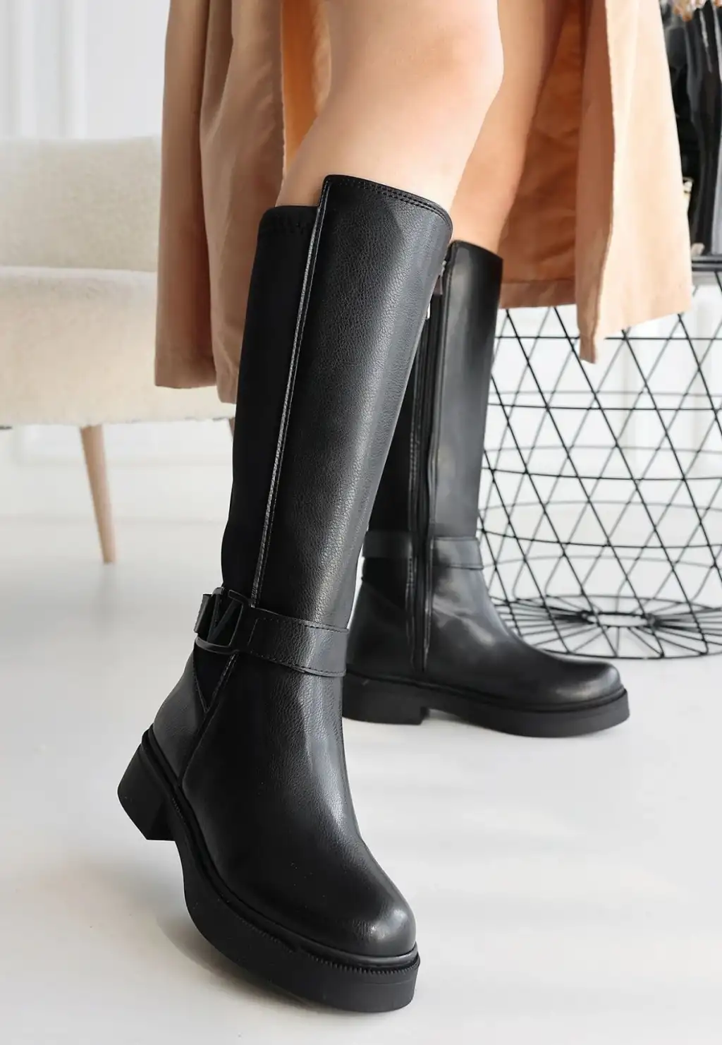 Detay: Topuklu Yandan Fermuarlı Diz Altı Çizme