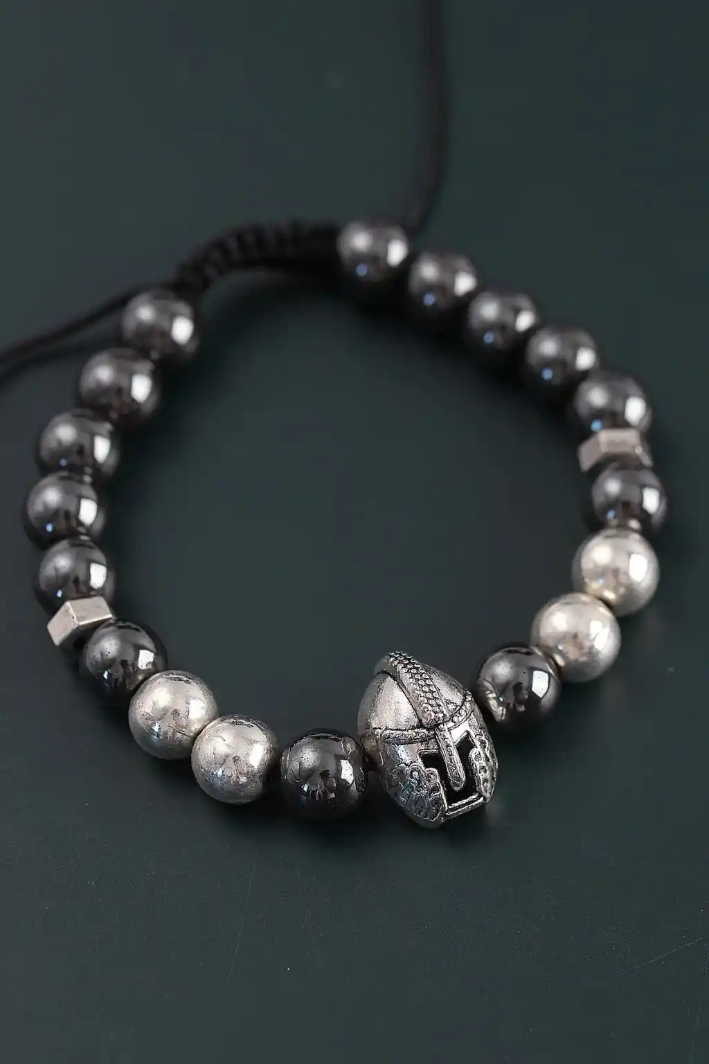 Doğal Taş Gladyatör Model Gümüş Ve Füme Renk Asansörlü Erkek Bileklik