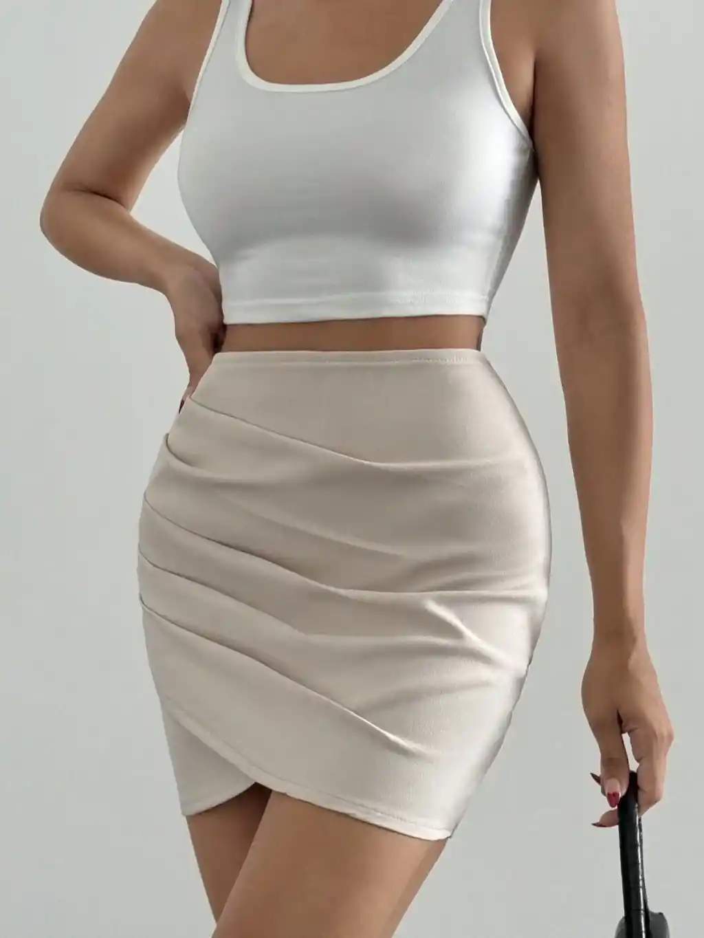 Cep detaylı oval kapaklı deri etek siyah h240048