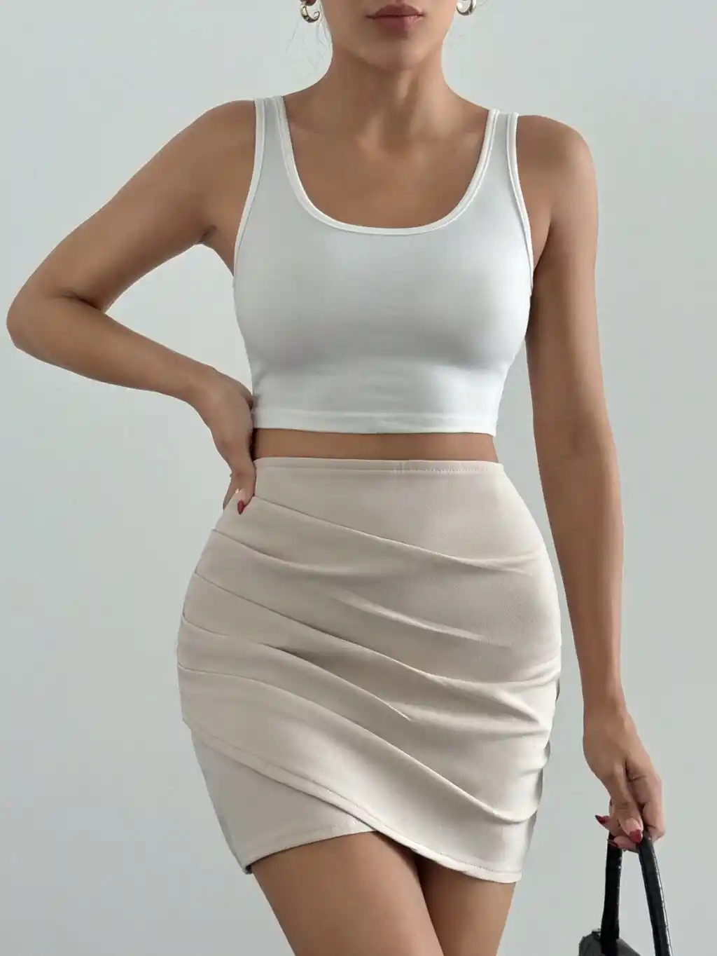 Cep detaylı oval kapaklı deri etek kahve h240048