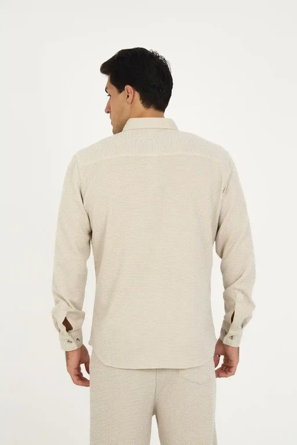 Düğmeli Tam Kalıp Uzun Kol Jakar Gömlek - Gri