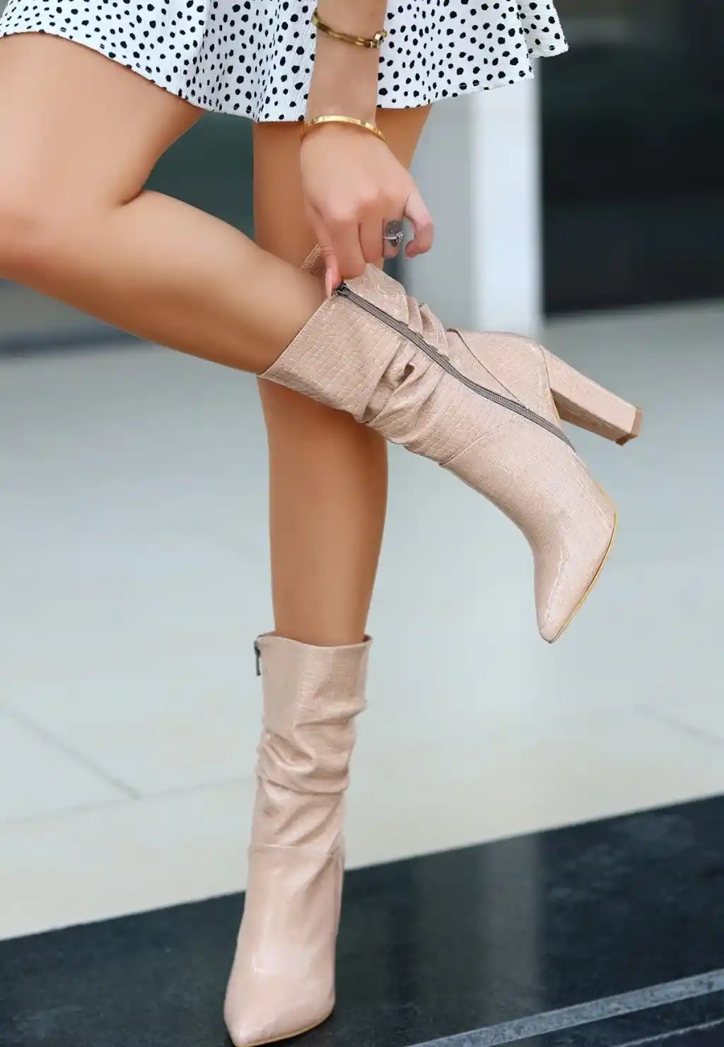Detay: Topuklu Yandan Fermuarlı Körüklü Bot