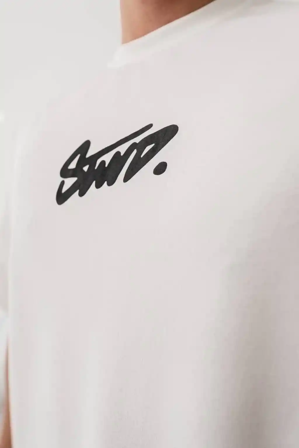Erkek Baskılı Oversize T-shirt - Beyaz