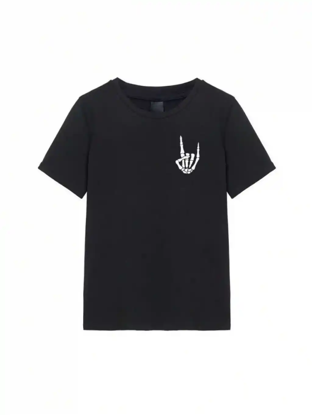 Erkekler için Siyah Tişört Grafik Genç Emo Vintage Gotik Rahat Büyük Beden Kısa Kollu Tişört Giysi Üst- Siyah