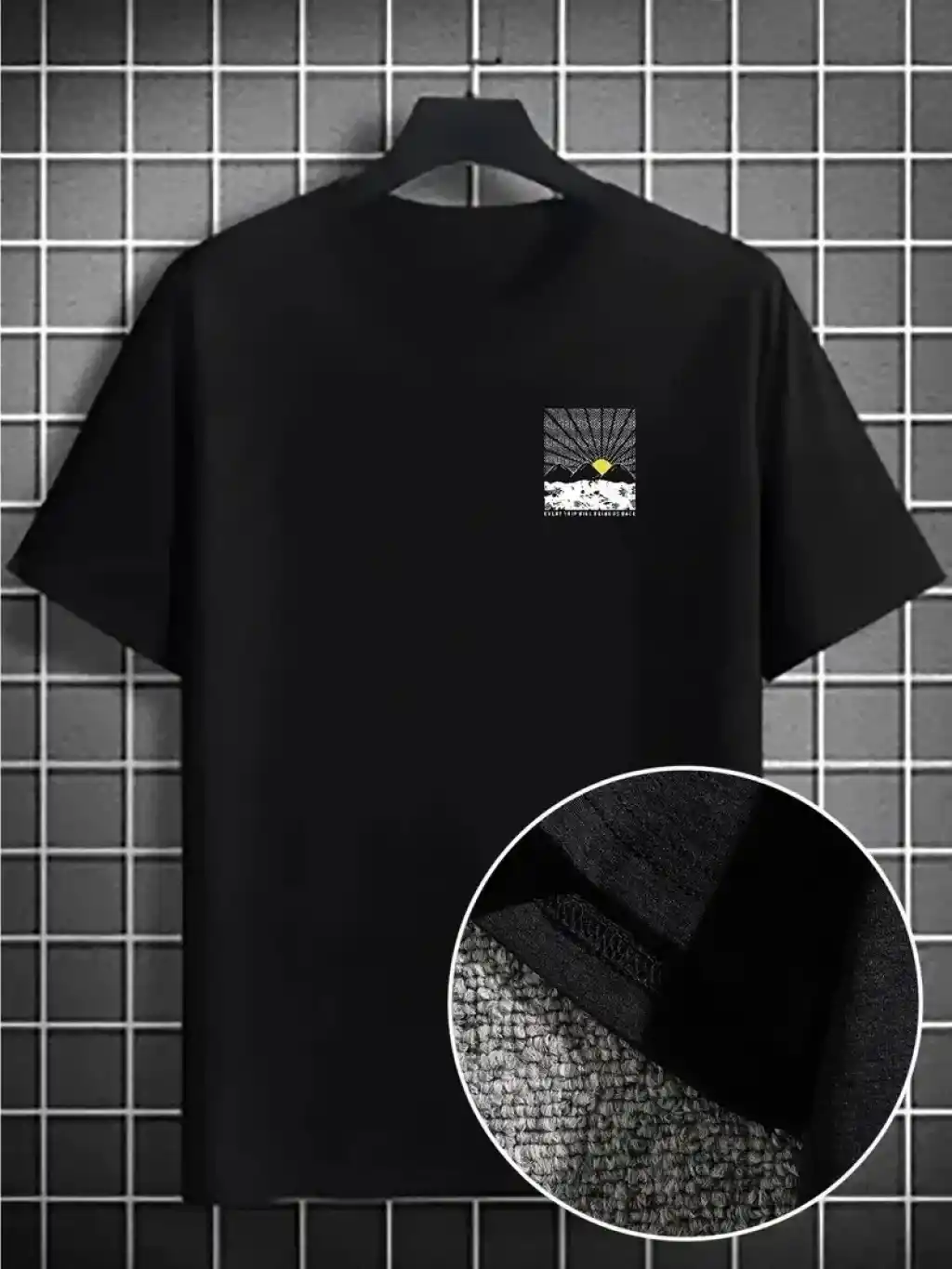 Erkek Dağ Grafikli Tişört, Yaz için Büyük Beden Rahat T-shirt - Siyah