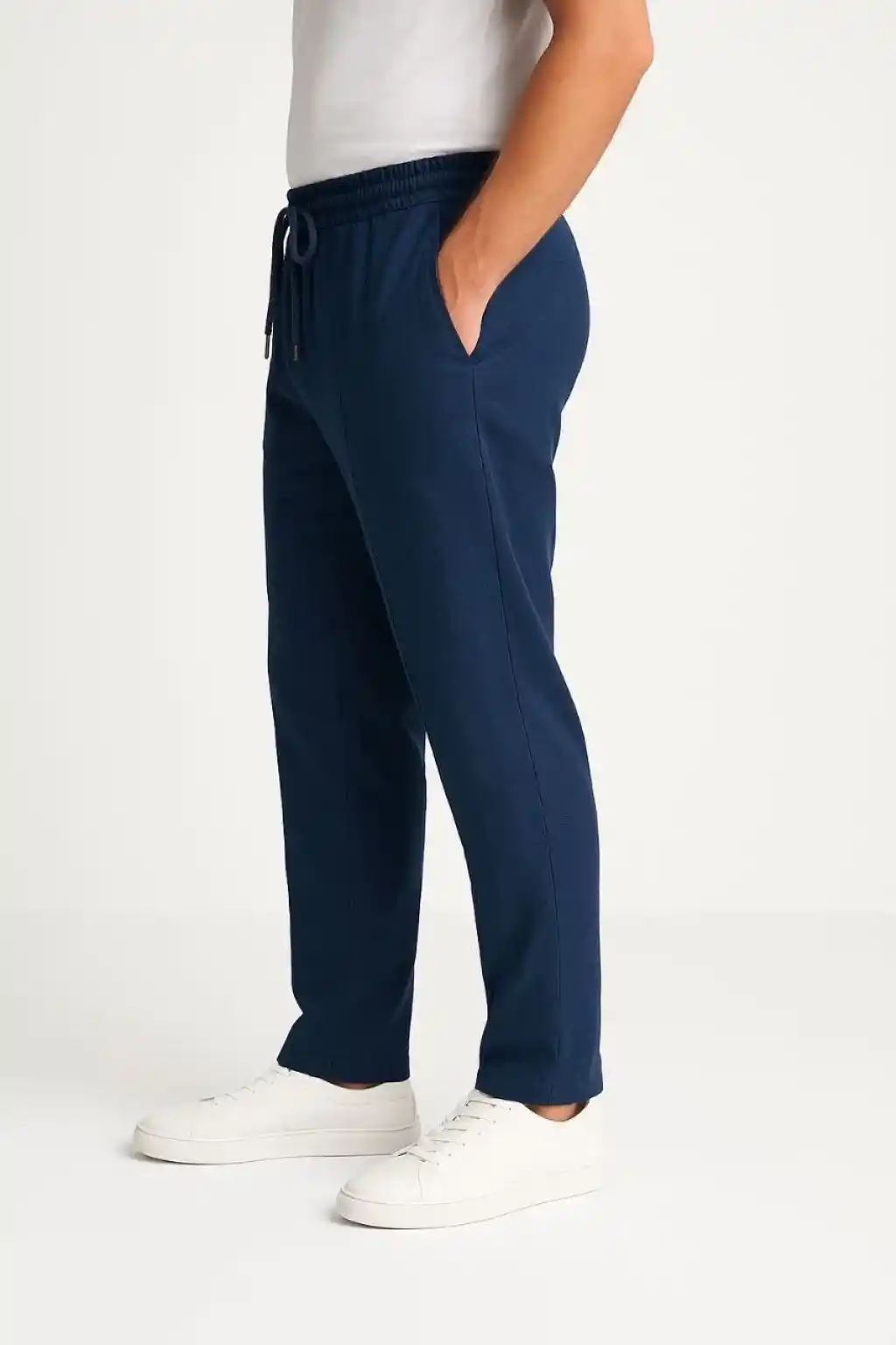 Erkek Keten Pantolon – Cepli, Beli Lastikli ve Bağcıklı, Nefes Alan Rahat Kalıp, Yazlık ve Baharlık Günlük Giyim, Şık & Konforlu Boru Paça Model - Lacivert