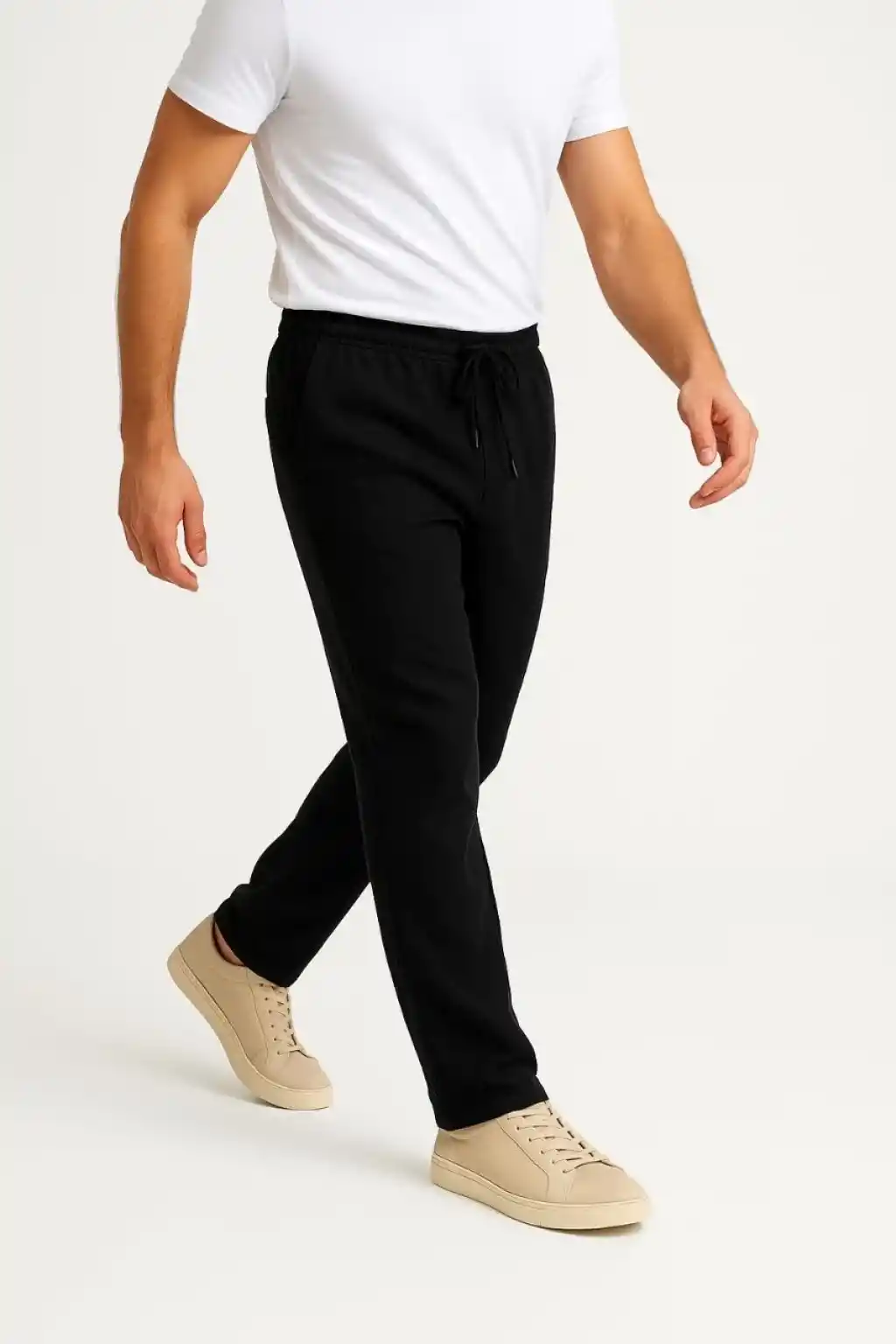 Erkek Keten Pantolon – Cepli, Beli Lastikli ve Bağcıklı, Nefes Alan Rahat Kalıp, Yazlık ve Baharlık Günlük Giyim, Şık & Konforlu Boru Paça Model - Siyah
