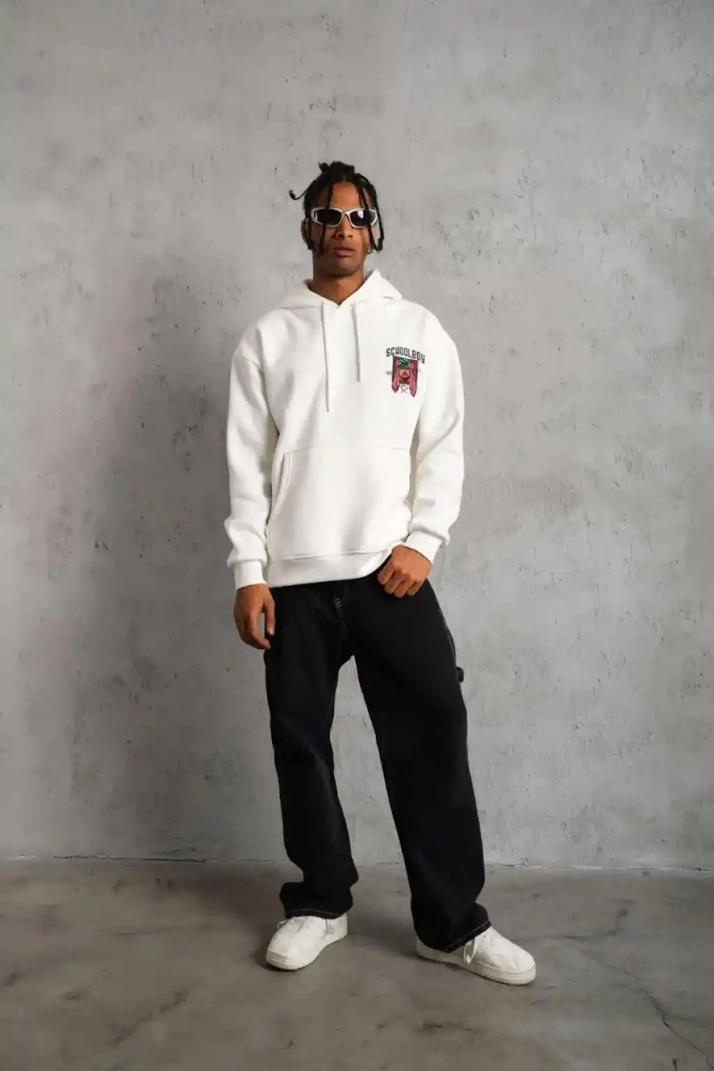 Erkek SCHOOL BOY Baskılı Kapüşonlu Sweat - Beyaz