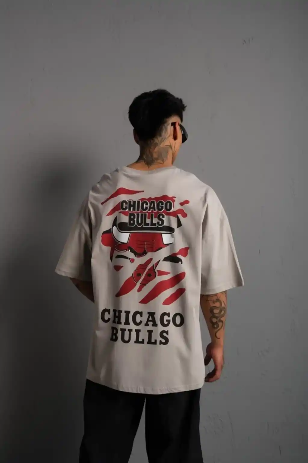 Erkek Sırt Baskılı A Kalite Oversize T-shirt - Gri