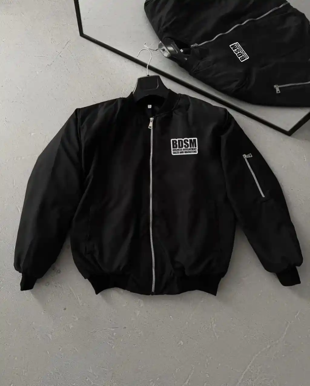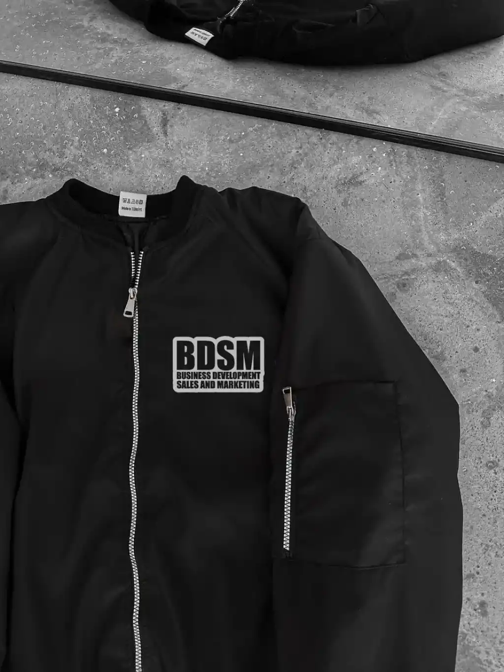Erkek Siyah Bomber Mont – Fermuarlı, Cepli, Kapitone Astarlı, Göğüs Baskılı Tasarım Günlük Rahat Ceket - Siyah