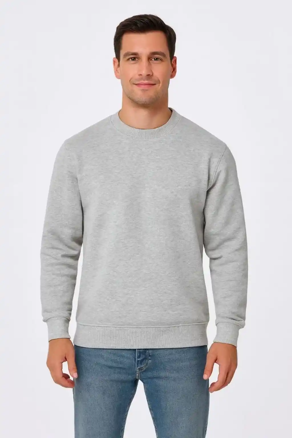 Erkek Üç İplik Düz Bisiklet Yaka SweatShirt - Gri