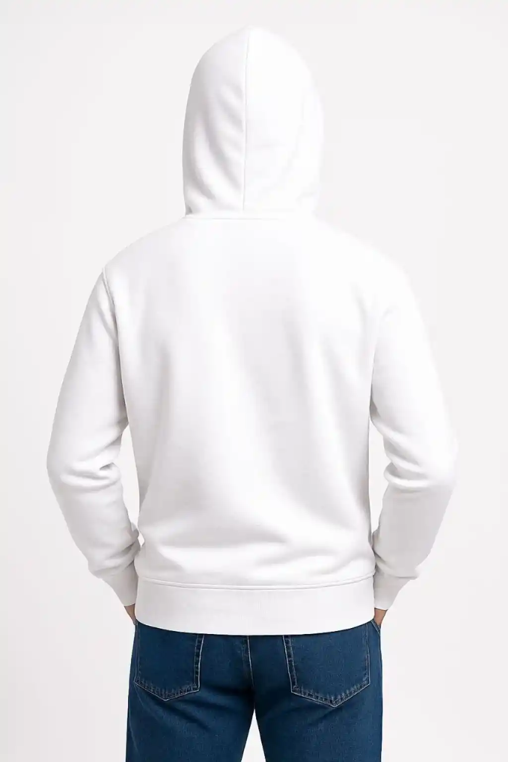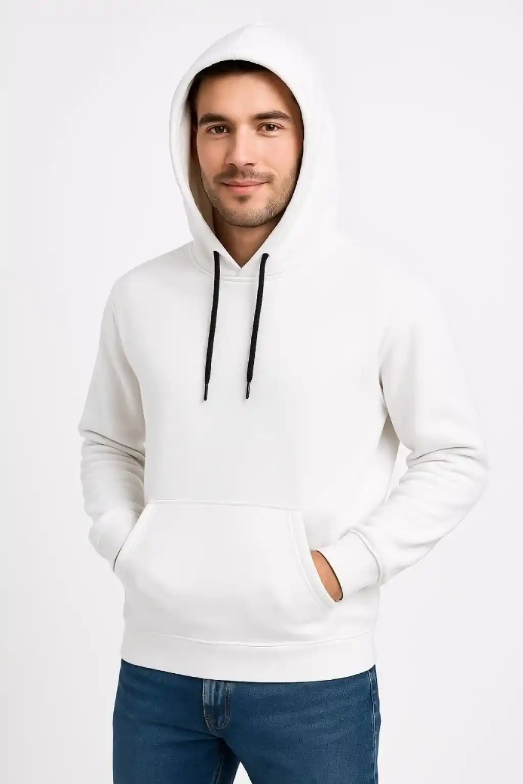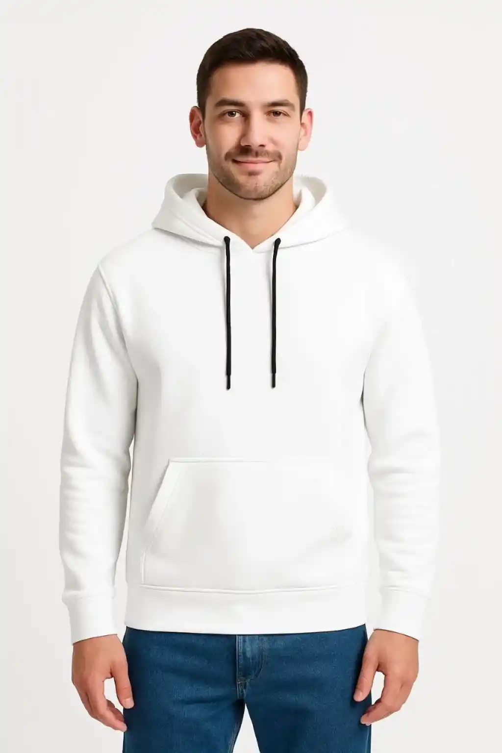 Erkek Üç İplik Kapüşonlu Kanguru Cepli SweatShirt hoodie - Beyaz