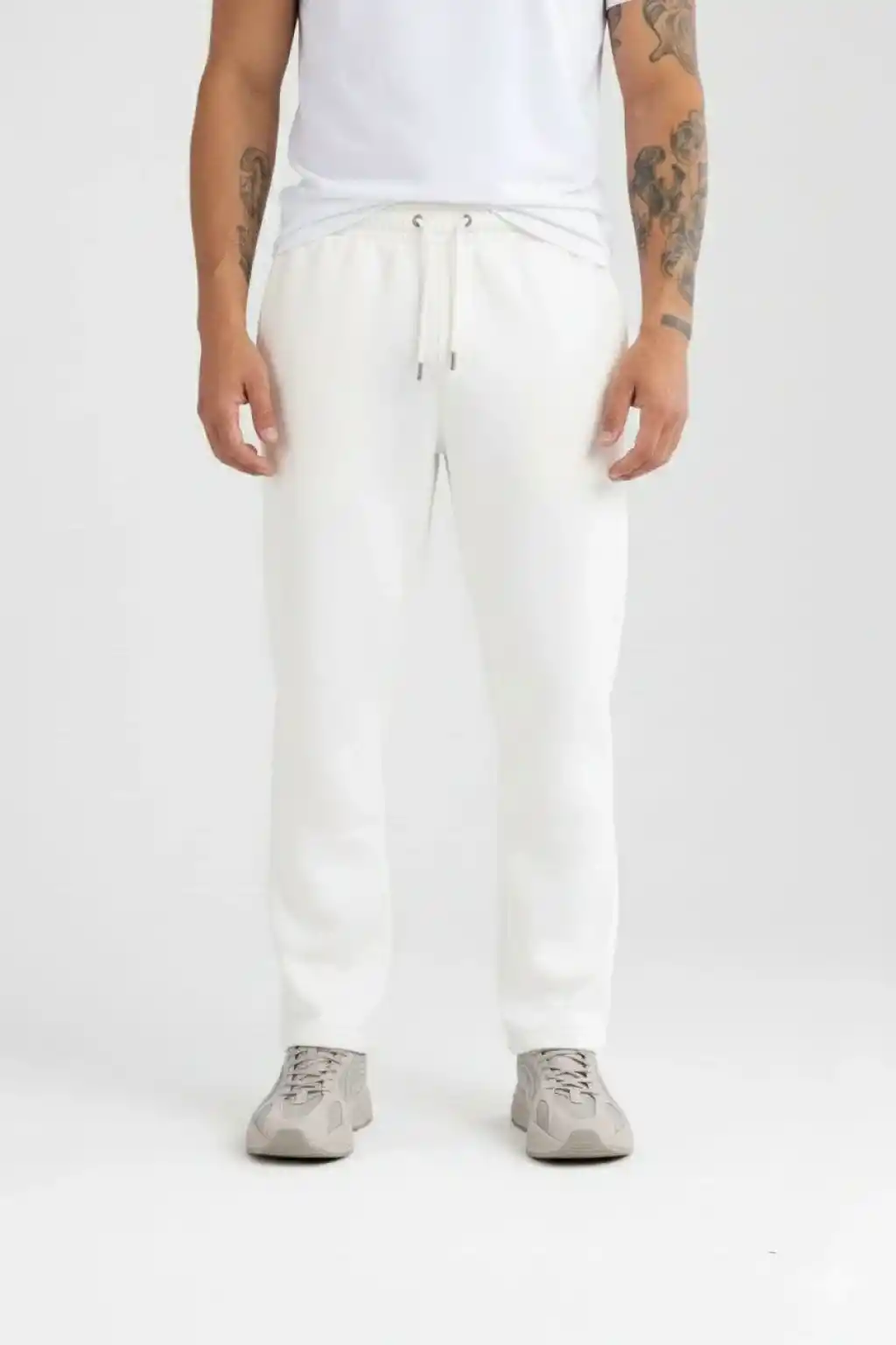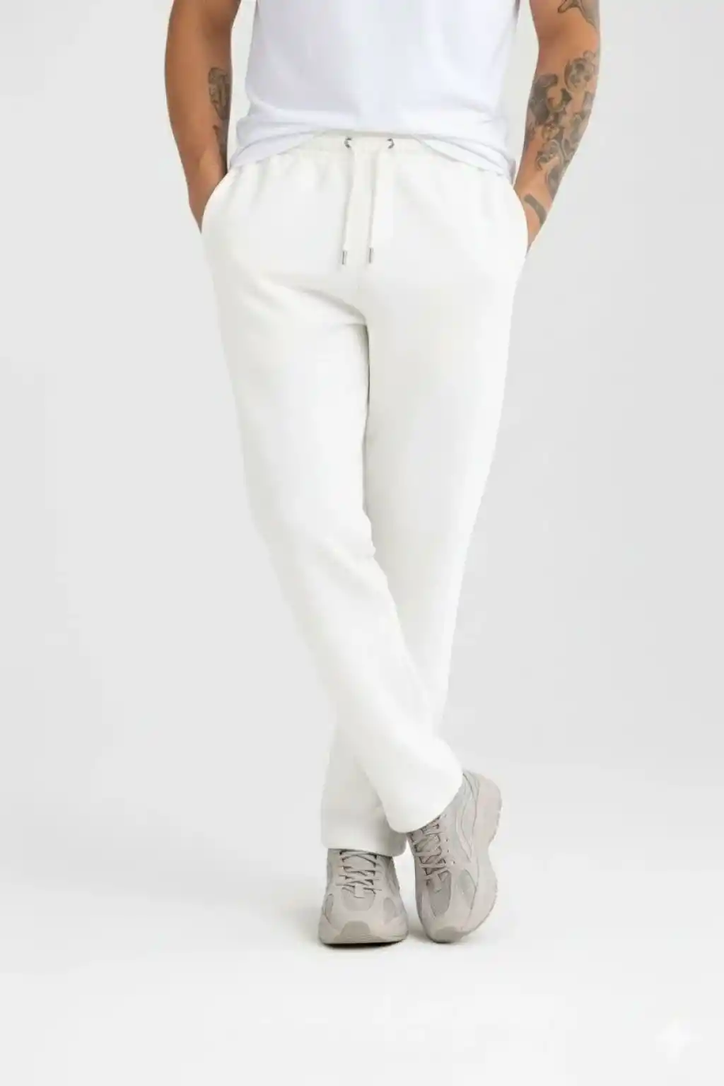 Erkek Üç iplik Kışlık Pamuklu Ovarsize Bağcıklı Düz Paça Cepli Eşofman Altı Spor Rahat Model - Beyaz