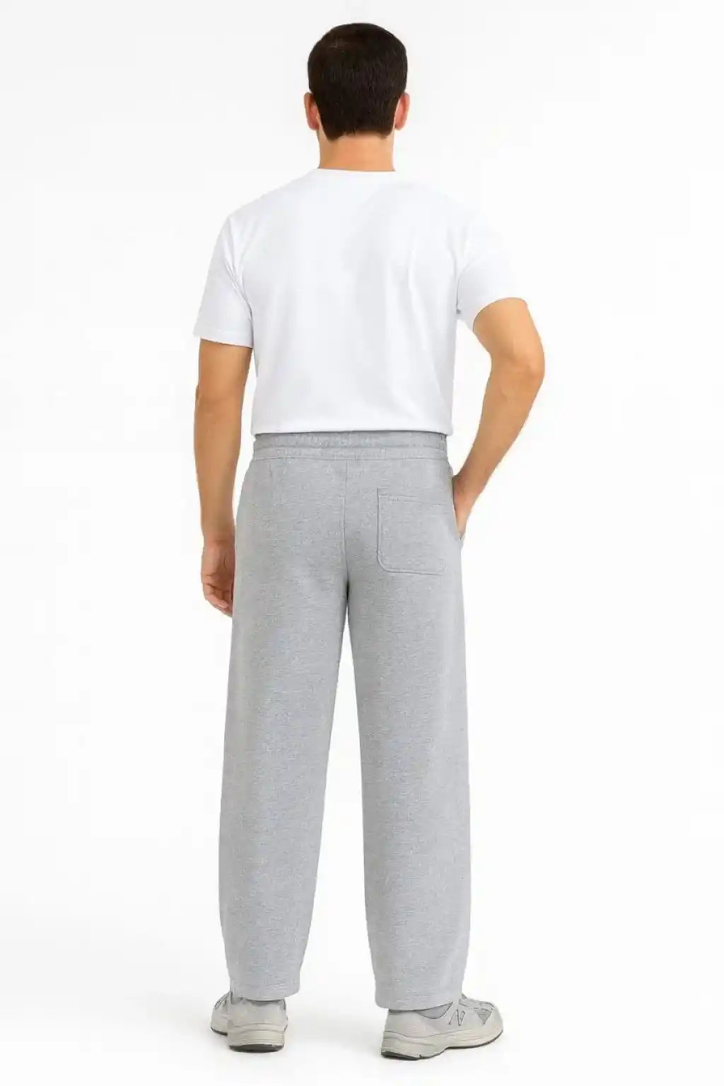 Erkek Üç iplik Kışlık Pamuklu Ovarsize Bağcıklı Düz Paça Cepli Eşofman Altı Spor Rahat Model - Beyaz