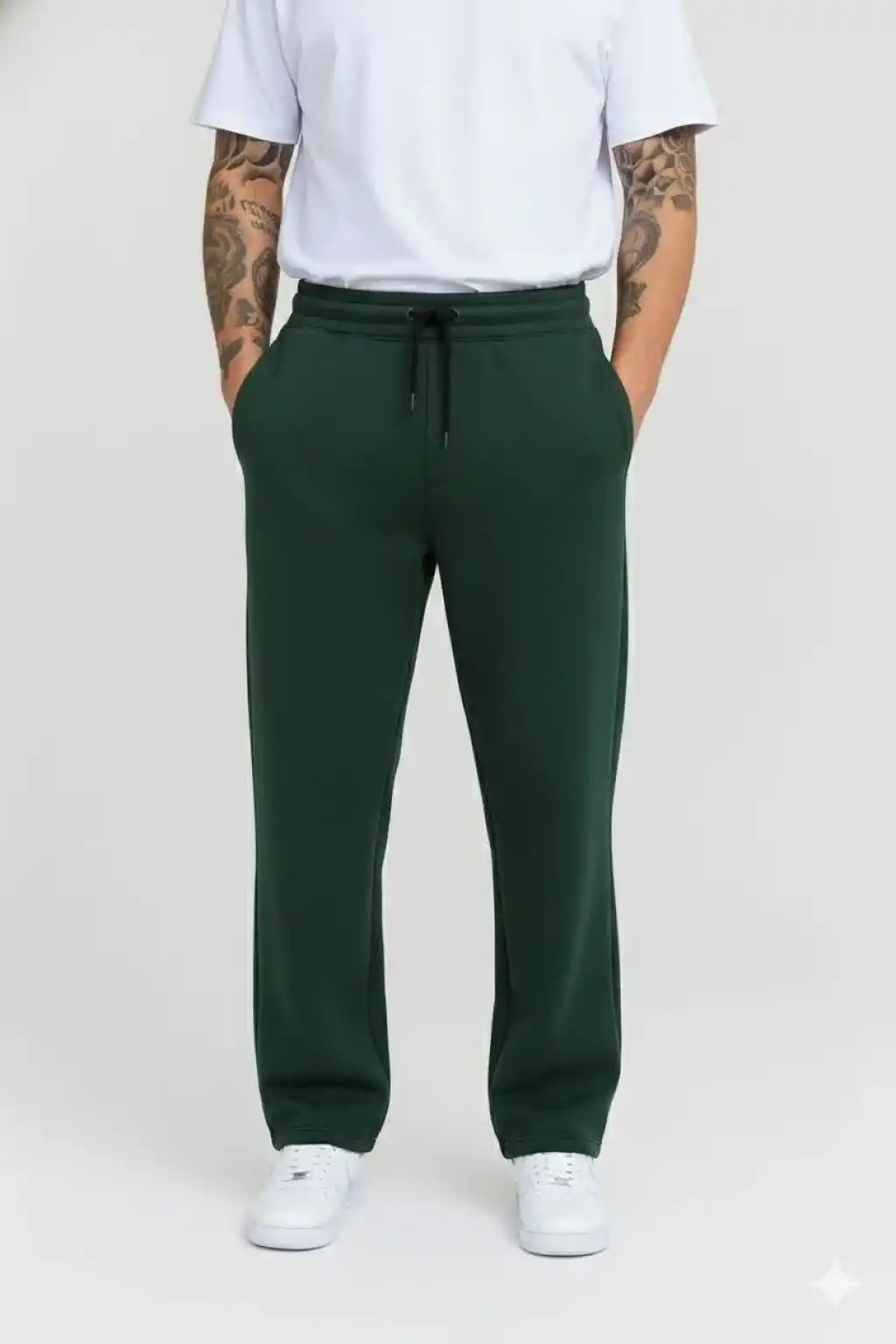 Erkek Üç iplik Kışlık Pamuklu Ovarsize Bağcıklı Düz Paça Cepli Eşofman Altı Spor Rahat Model - Beyaz