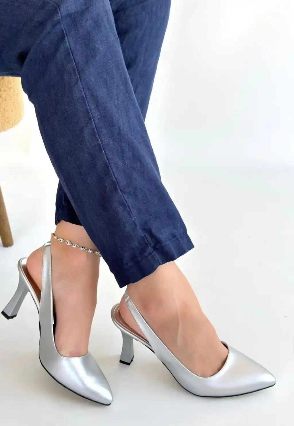Feey Gümüş Cilt Topuklu Ayakkabı
