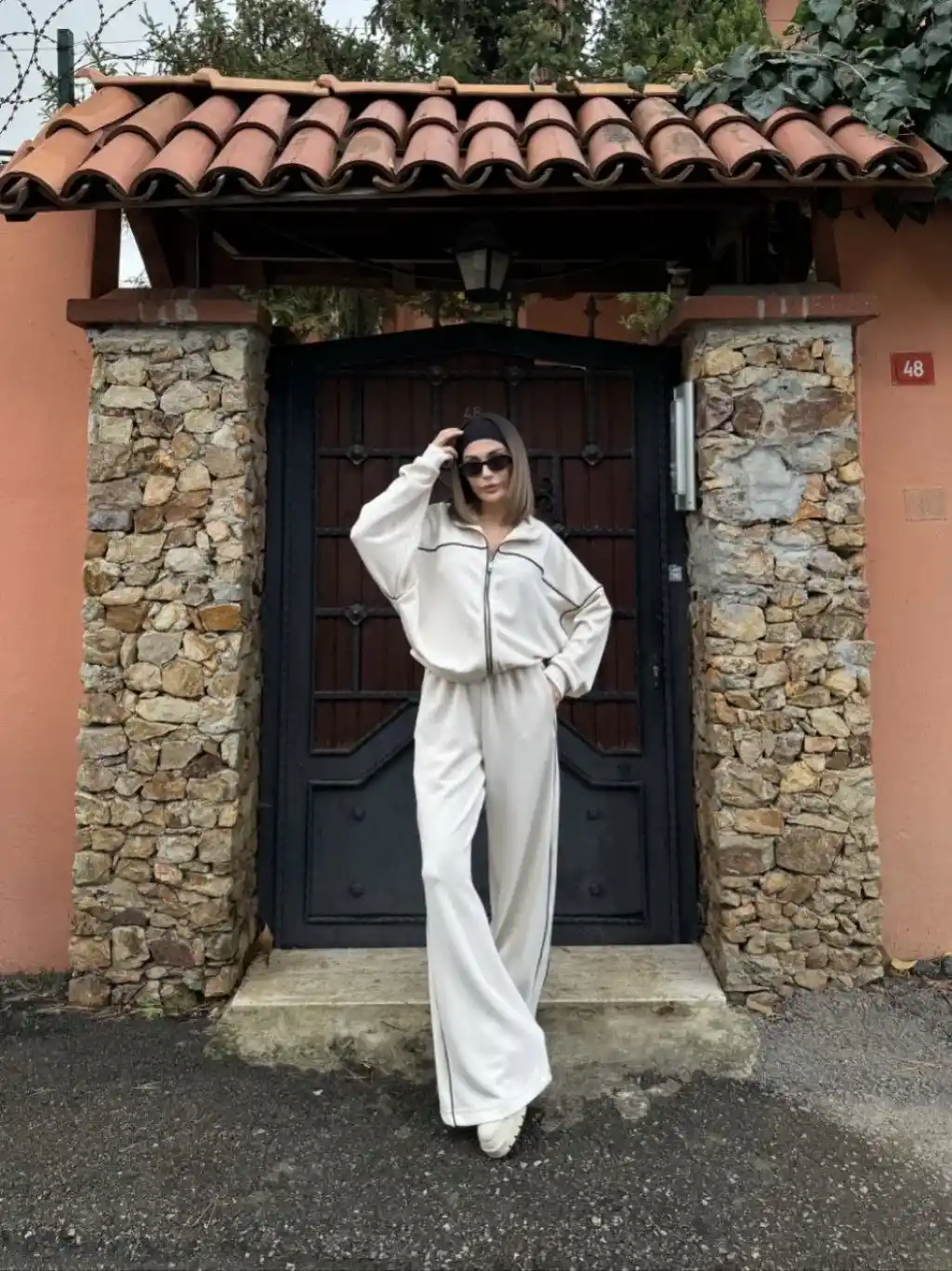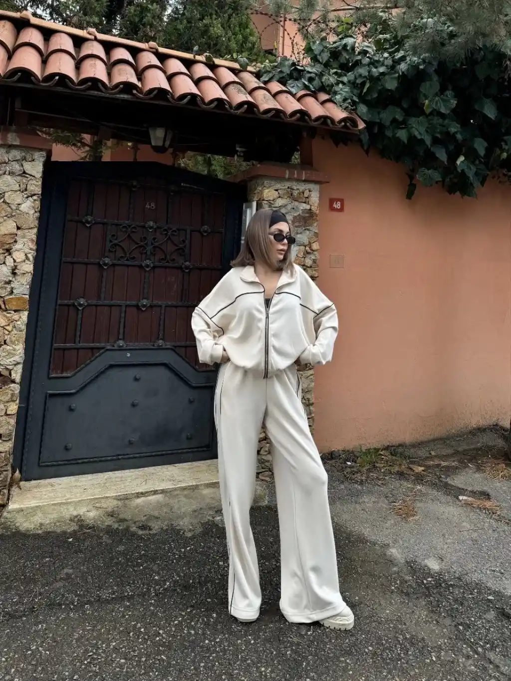 Fermuarlı Eşofman Pantolon İkili Takım - Beyaz