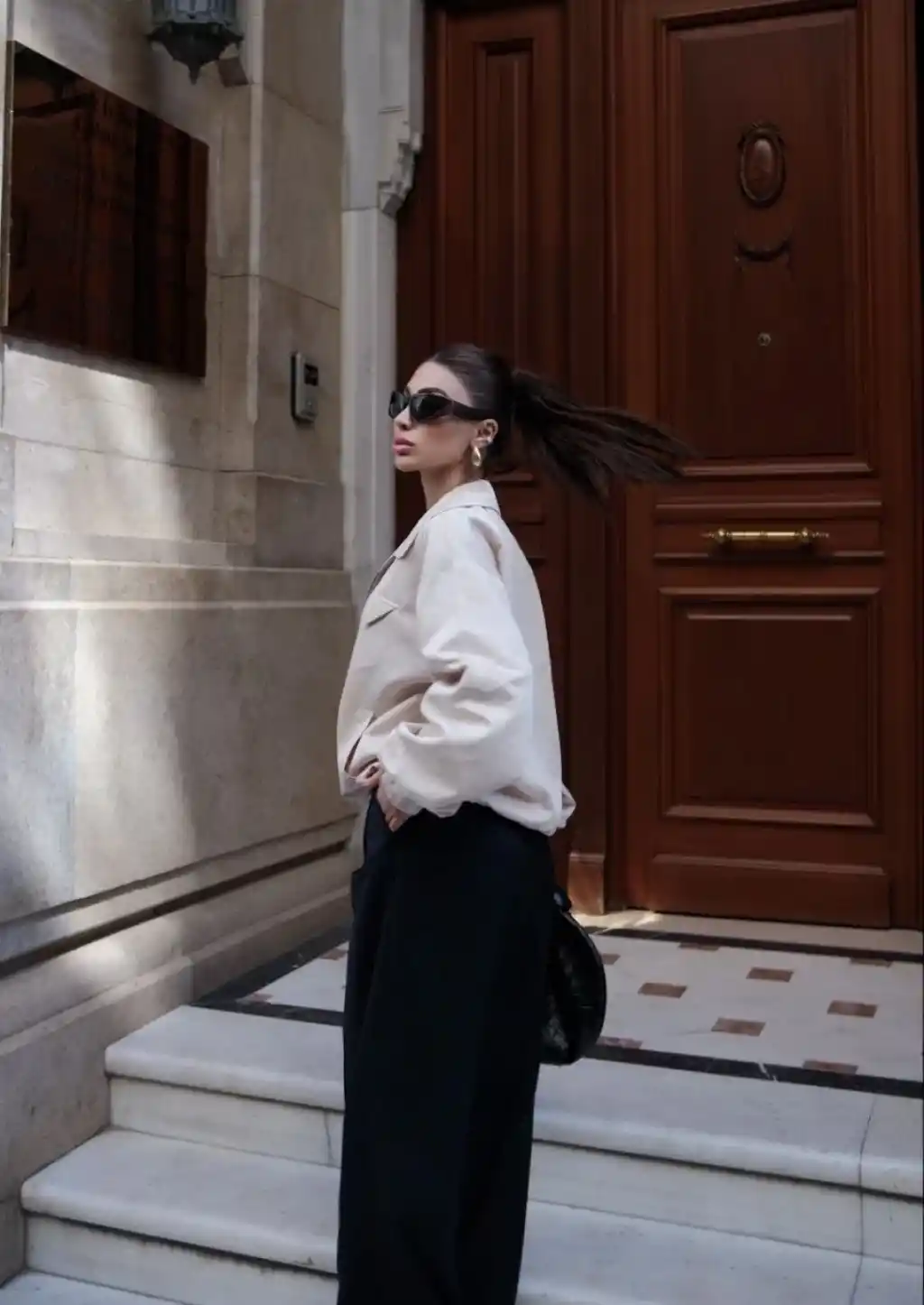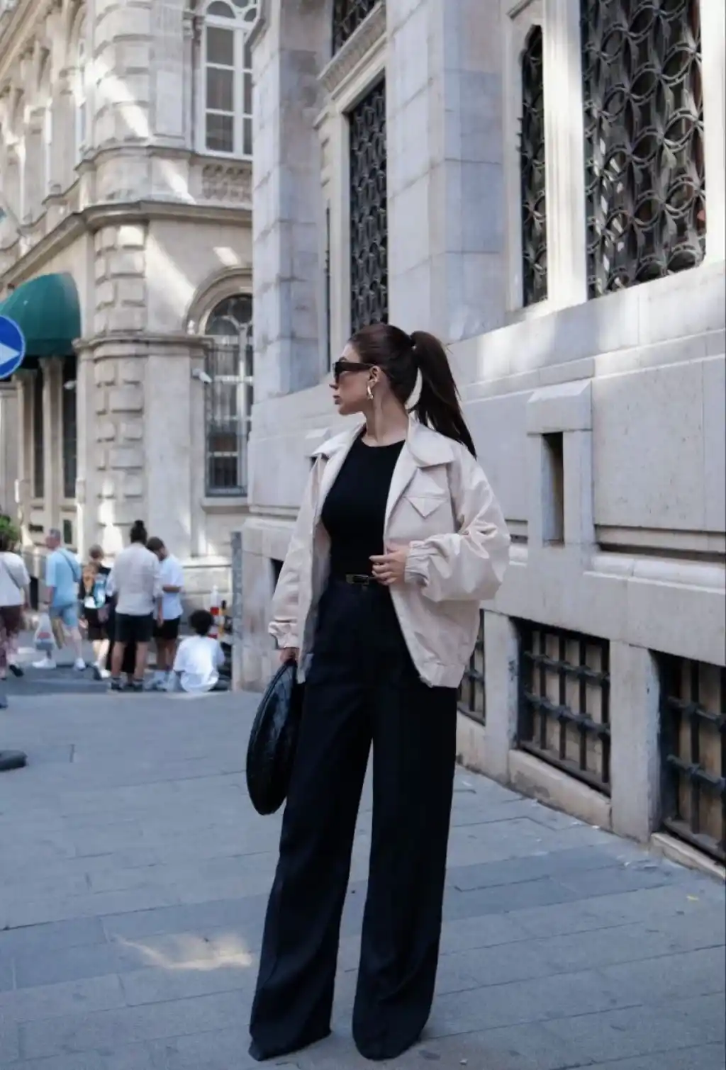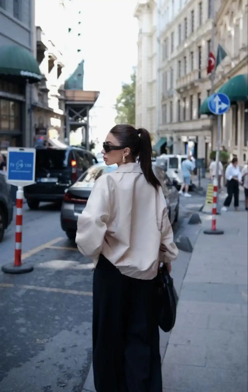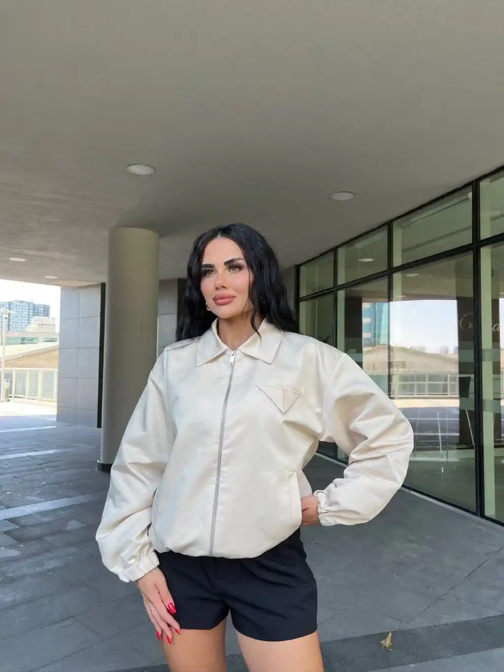 Fermuarlı Gömlek Yaka Bomber Ceket - Beyaz