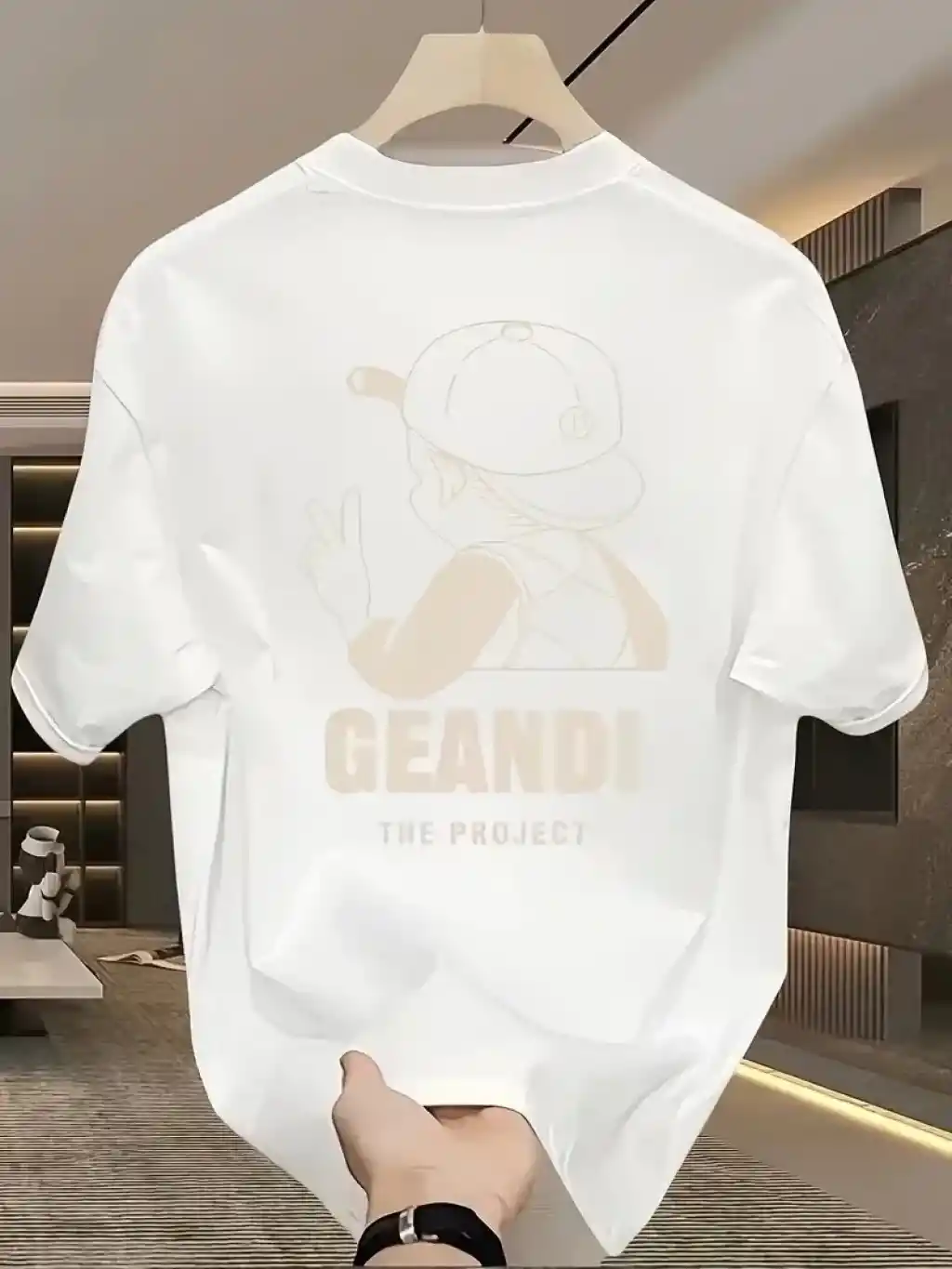 Geniş Kesim Pamuklu Tişört - "GANDHI The Project" Baskılı, Beyaz, Rahat Kesim, Kısa Kollu, Günlük Kıyafet, Her Gün Giyilebilecek Tişört- Beyaz