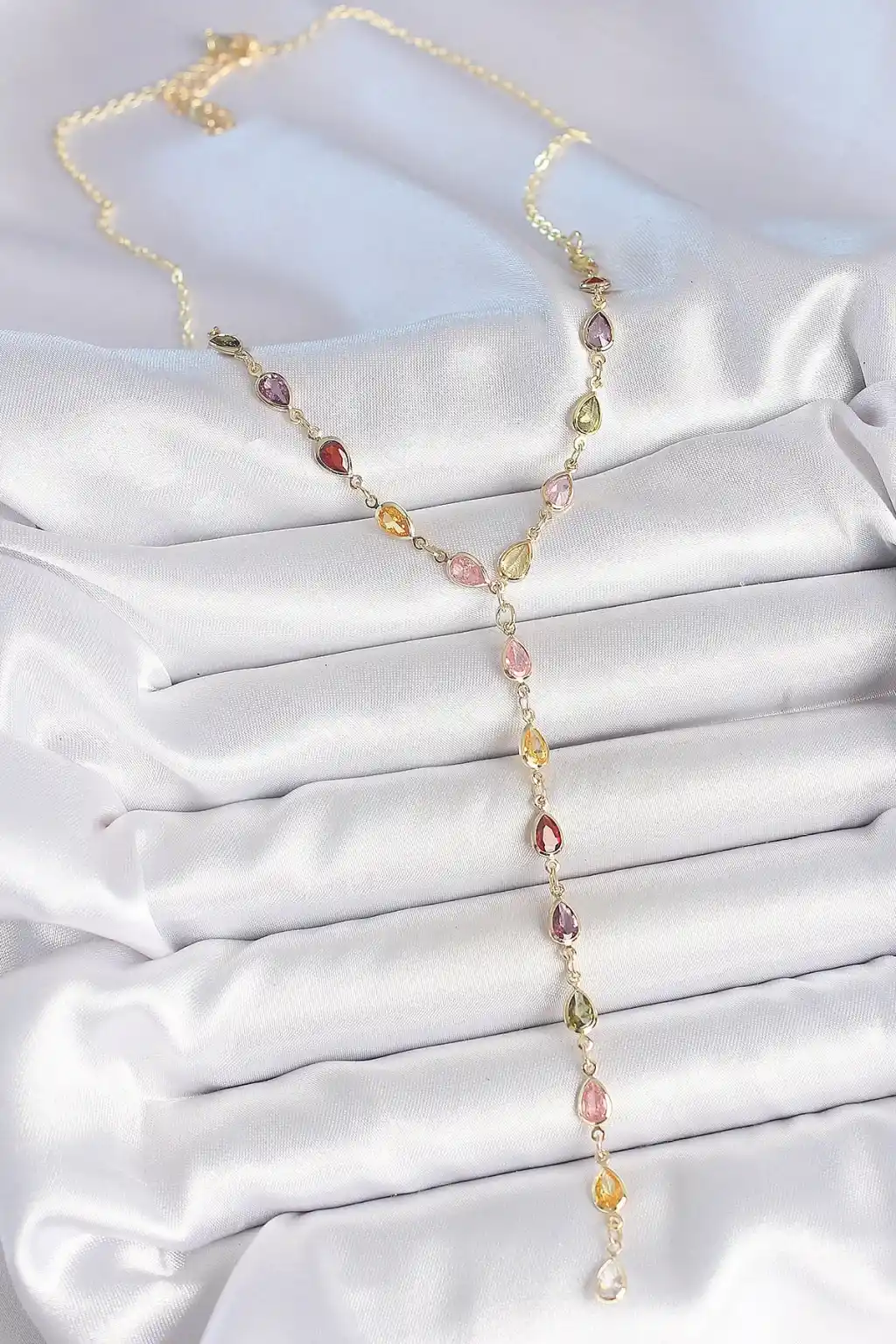 Gold Karışık Renk Zirkon Taşlı Y Pirinç Kolye