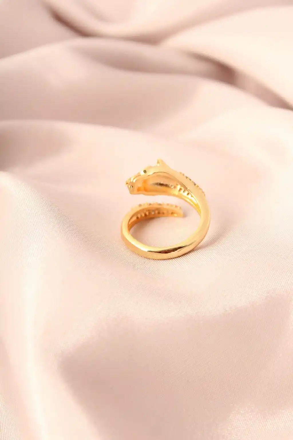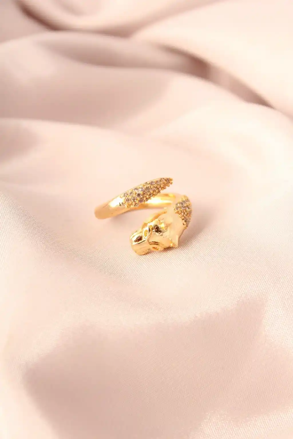 Gold Renk Metal Zirkon Taşlı Kaplan Model Ayarlanabilir Kadın Yüzük