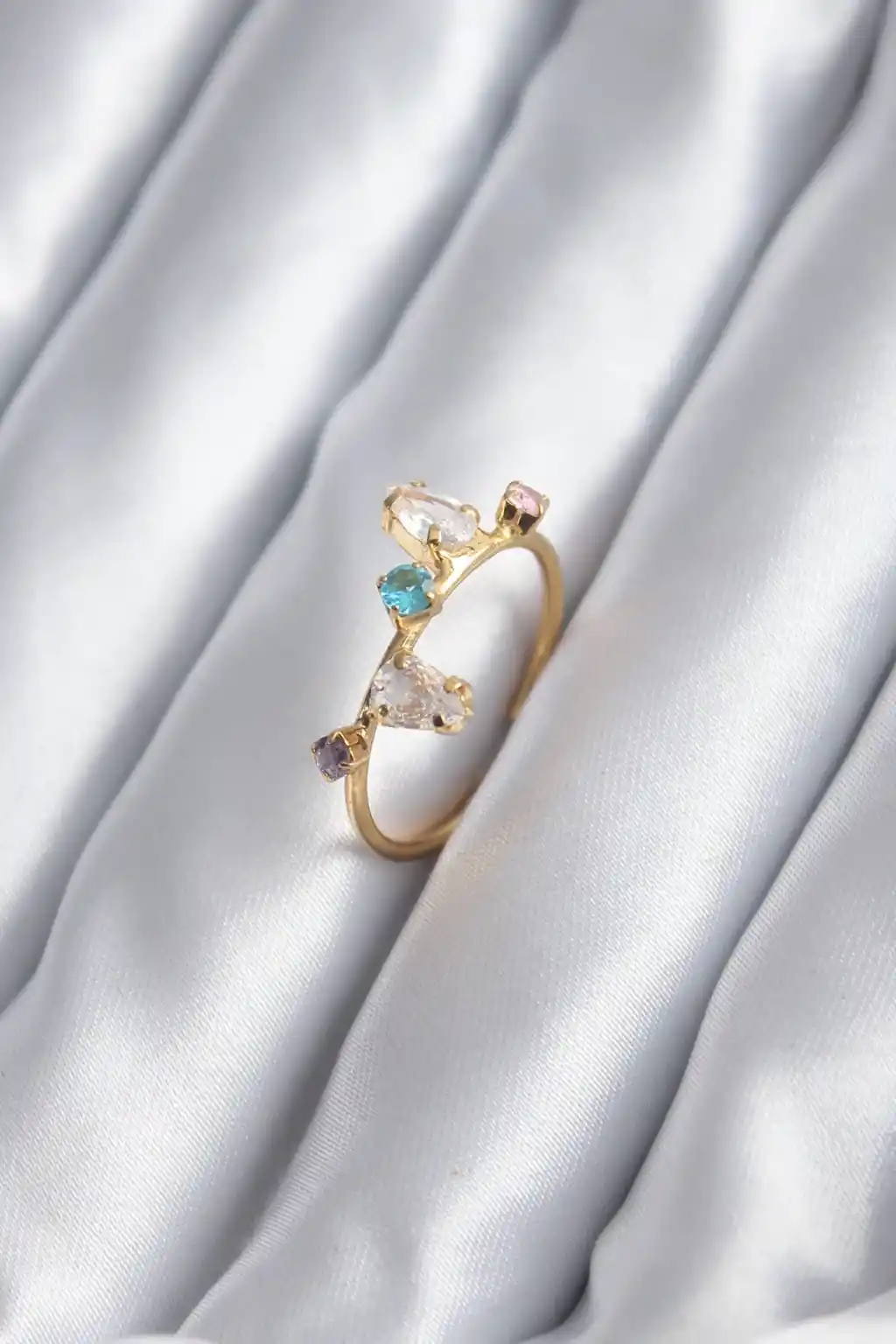 Gold Renk Renkli Zirkon Taşlı Kadın Yüzük