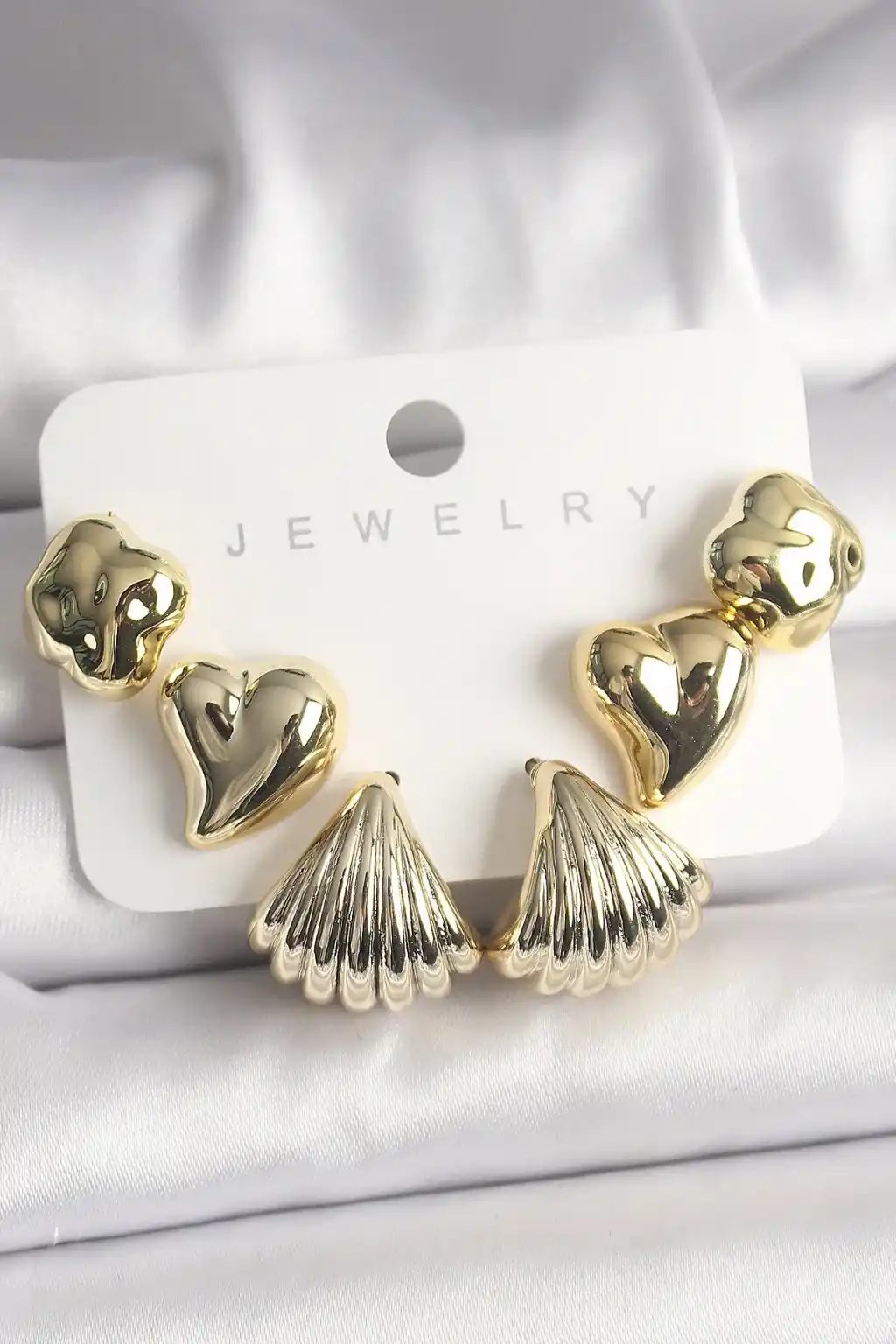 Gold Renk Yonca Kalp Deniz Kabuğu Figür CCB Kadın Küpe Seti