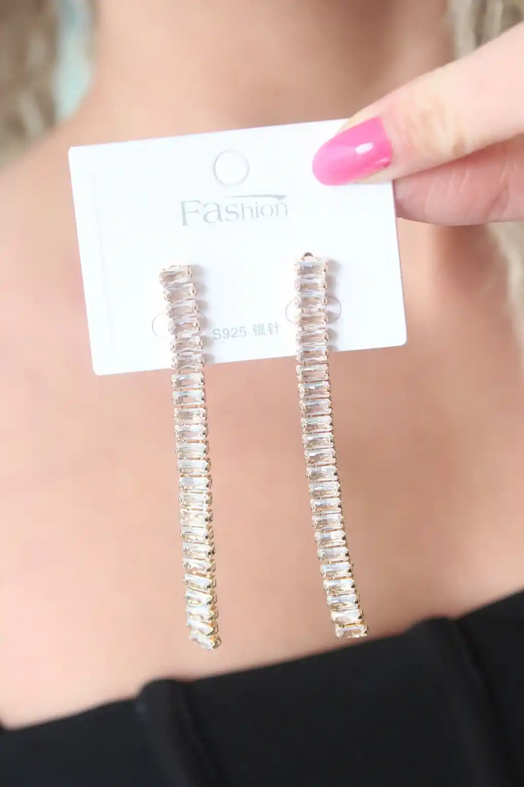 Gold Renk Zirkon Taşlı Kadın Küpe