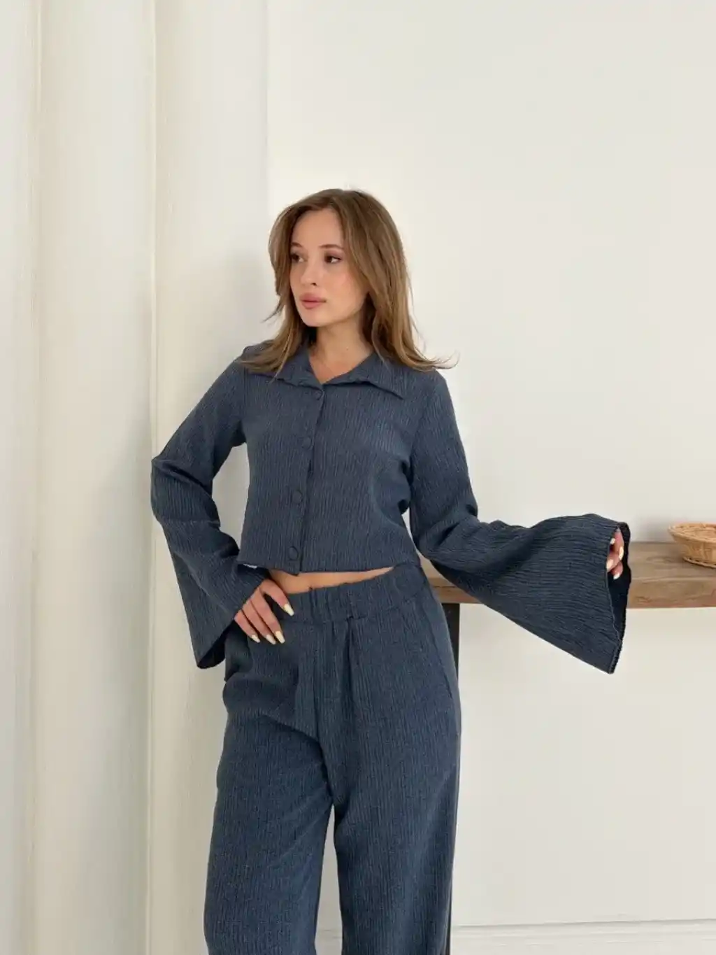 Farklı ve şık bir görünüm için ideal bir seçenek olan Lacivert Gömlek Yaka Kaplama Düğmeli Takım, gardırobunuzun vazgeçilmezi olmaya aday! Hem şıklığı hem de rahatlığı bir arada sunan bu takım, kusursuz bir tarz yaratmanıza yardımcı olacak.