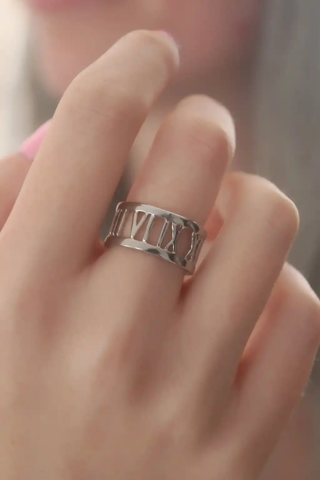 Gümüş Renk Roma Rakam Model Kadın Yüzük