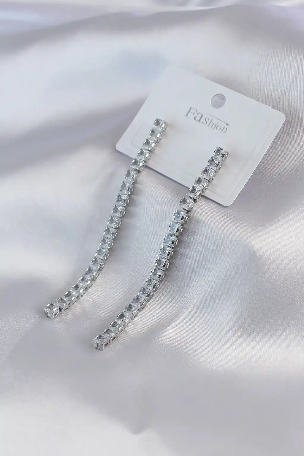 Gümüş Renk Zirkon Taşlı Kadın Küpe