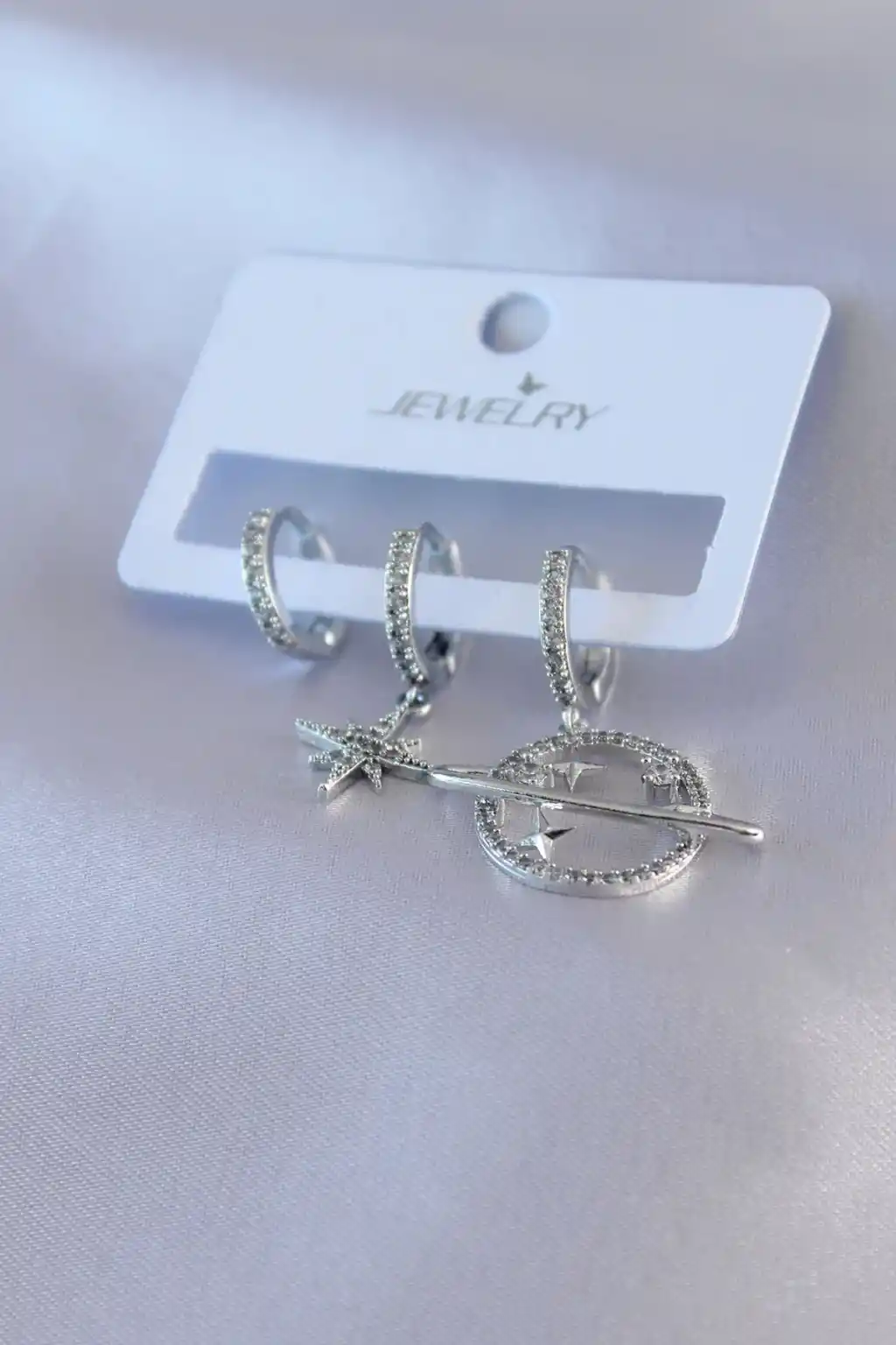 Gümüş Renk Zirkon Taşlı Yıldız Model Pirinç Kadın Küpe