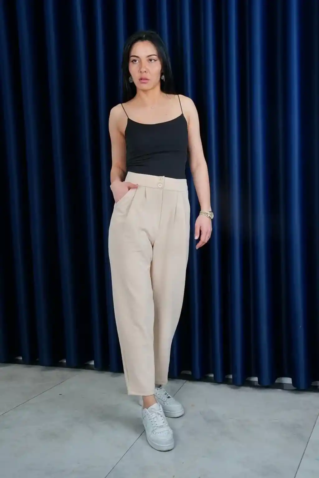 Fit comfort bej salaş pantolon petrol yeşili A6011
