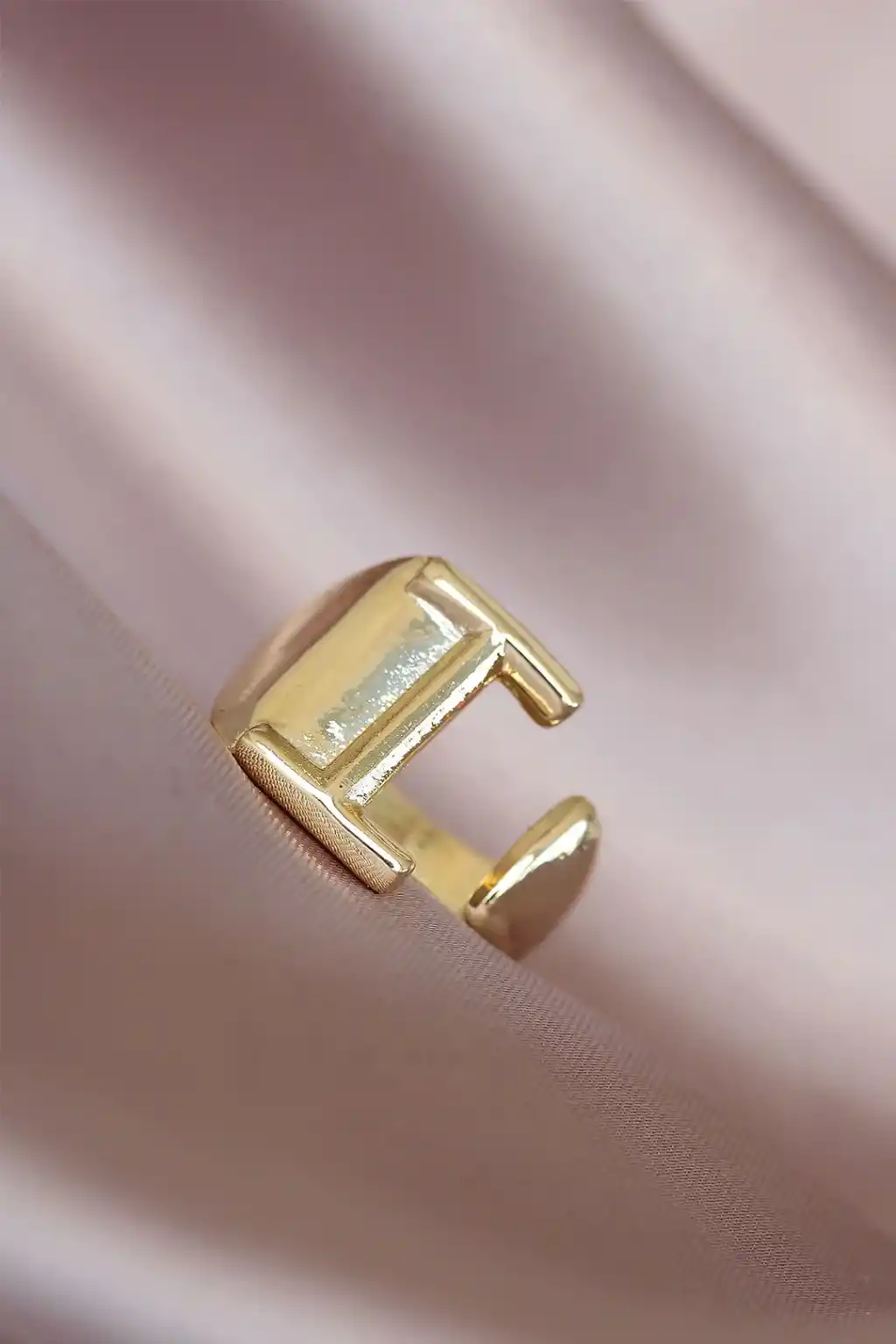 I Harfli Altın Renk Ayarlamalı Metal Kadın Yüzük