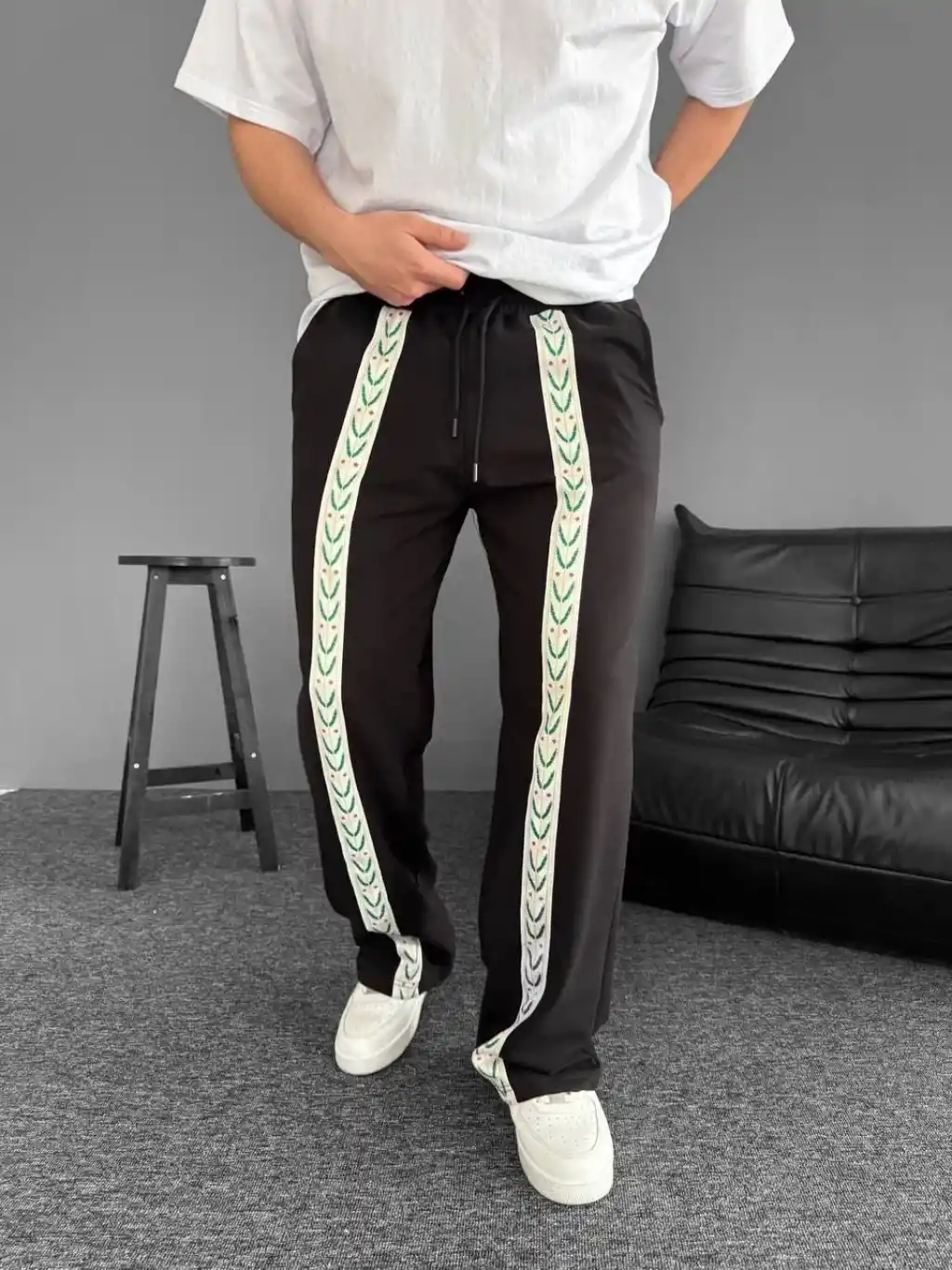 İki İplik Kumaş Şeritli Alt Esofman - Siyah