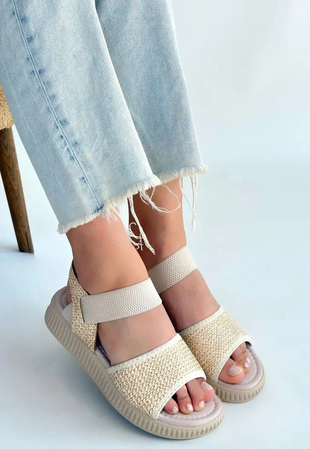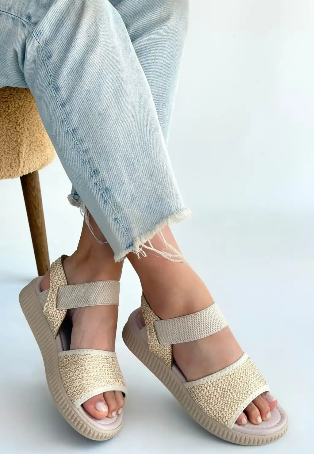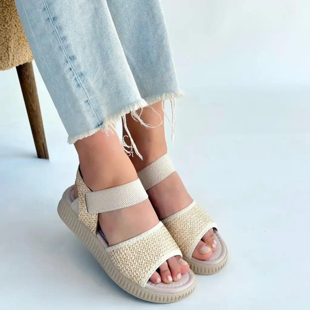 • JAKE BEJ HASIR CİLT SANDALET