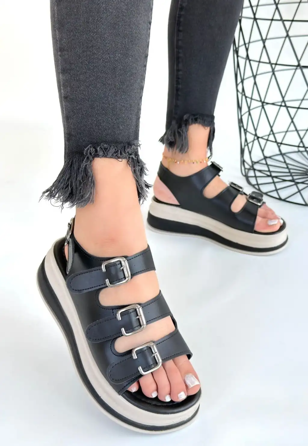 Detay : Tokalı Kemerli Ortapedik Sandalet
